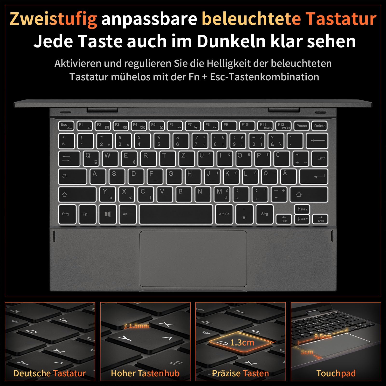 - 【10,95 Zoll Mini Laptop】Dieses Notebook ist nur 25,1 x 17 x 1,7 cm groß und wiegt nur 1,1 kg, was es besonders leicht zu transportieren macht. Der schmale Rahmen und das hochauflösende 2000 x 1200 Display bieten ein hervorragendes visuelles Erlebnis und vereinen starke Leistung mit hoher Mobilität.