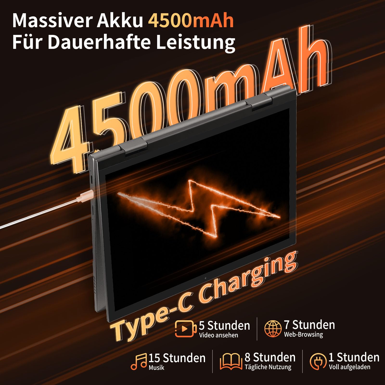- 【Großes Akku mit langanhaltender Laufzeit】Dieser Laptop ist mit einem leistungsstarken 4500mAh Akku ausgestattet, der eine außergewöhnlich lange Akkulaufzeit bietet. Egal ob für Arbeit, Studium oder Unterhaltung, der Akku unterstützt Ihre Bedürfnisse über einen langen Zeitraum. Das optimierte Energiemanagement System sorgt für eine verlängerte Nutzungsdauer und reduziert die Notwendigkeit häufiger Ladezyklen.
