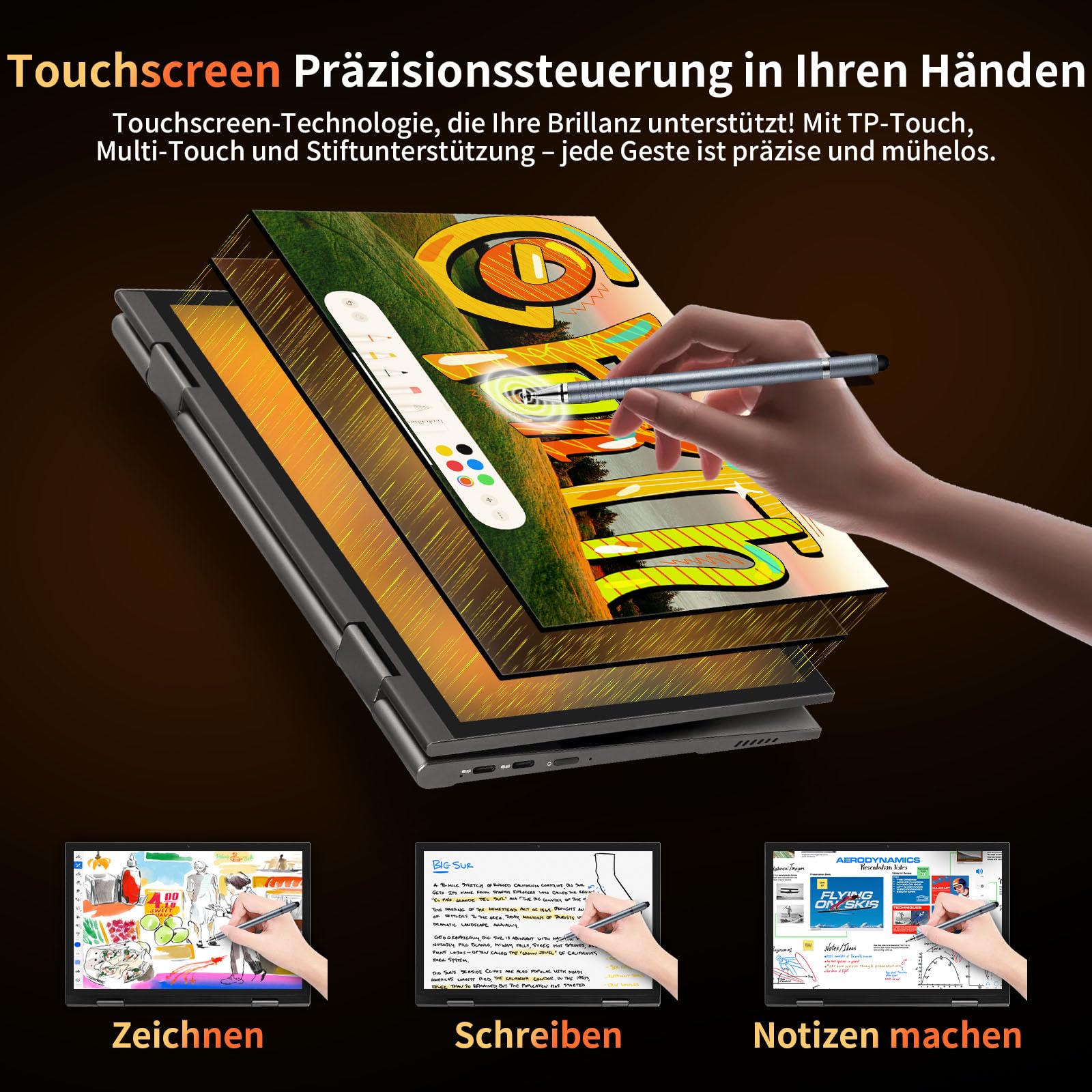 - 【Touchscreen + QWERTZ Tastatur】Dieses Gerät verfügt über ein hochsensitives Touchscreen und einen nützlichen Touchpen, die eine flüssige Hand- und Zeichenerfahrung bieten. Das Standard-QWERTZ-Tastaturlayout erleichtert das Tippen und sorgt für eine natürliche Eingabe, wodurch sowohl Arbeits- als auch Lernprozesse effizienter und komfortabler werden.