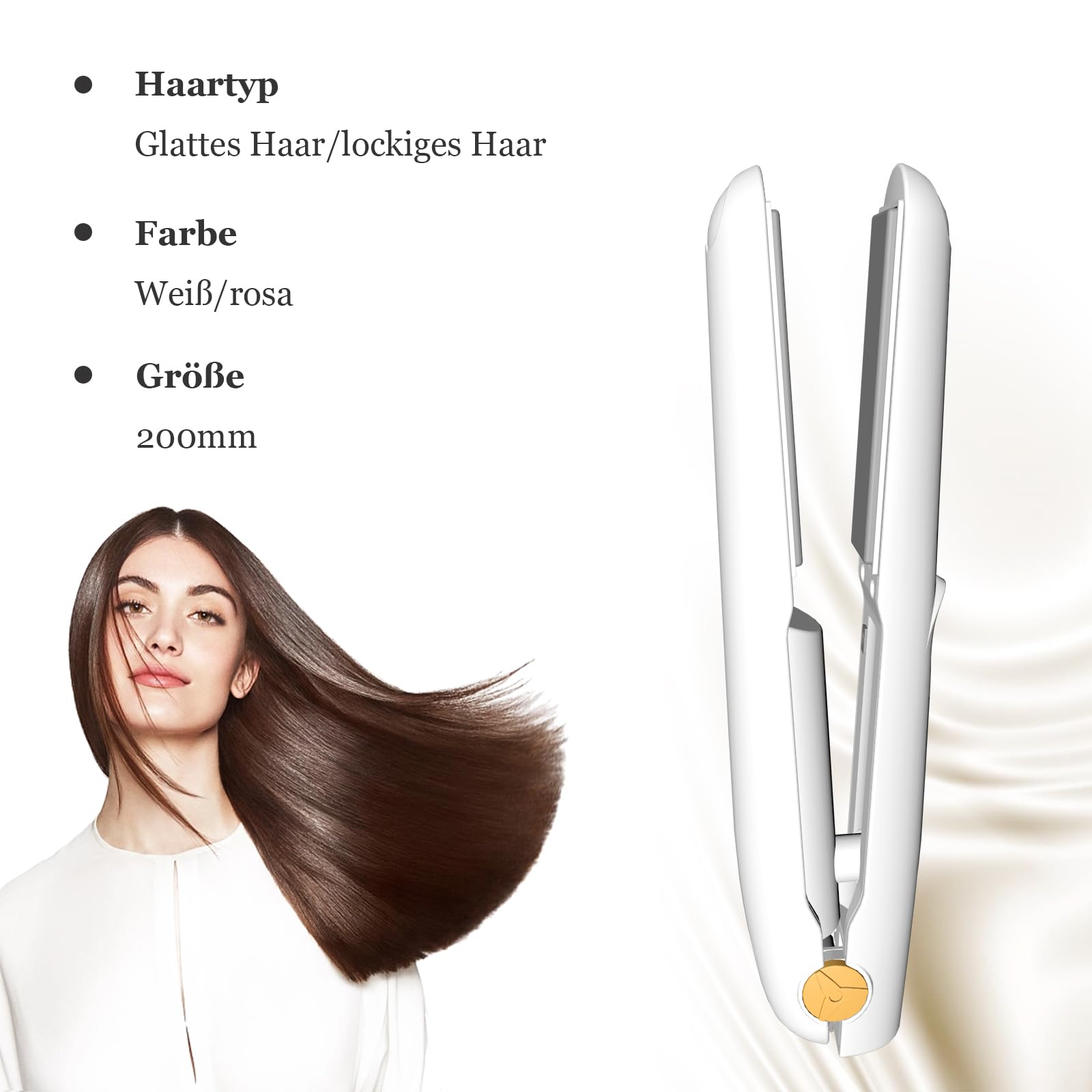 - 【Drei Temperatureinstellungen, sorgenfreie Haarpflege】 mini Gätteisen verfügt über drei Temperatureinstellungen: 180 °C für feines Haar, 180 °C für normales Haar und 200 °C für dickes oder lockiges Haar. Nach einer einzigen Ladung von 1 Stunde kann es bis zu 30 Minuten lang ununterbrochen verwendet werden. Sie können die Temperatur entsprechend Ihrem Haartyp wählen, um wissenschaftliche Glättungs- oder Lockeneffekte zu erzielen, ohne befürchten zu müssen, dass Ihr Haar beschädigt wird.
