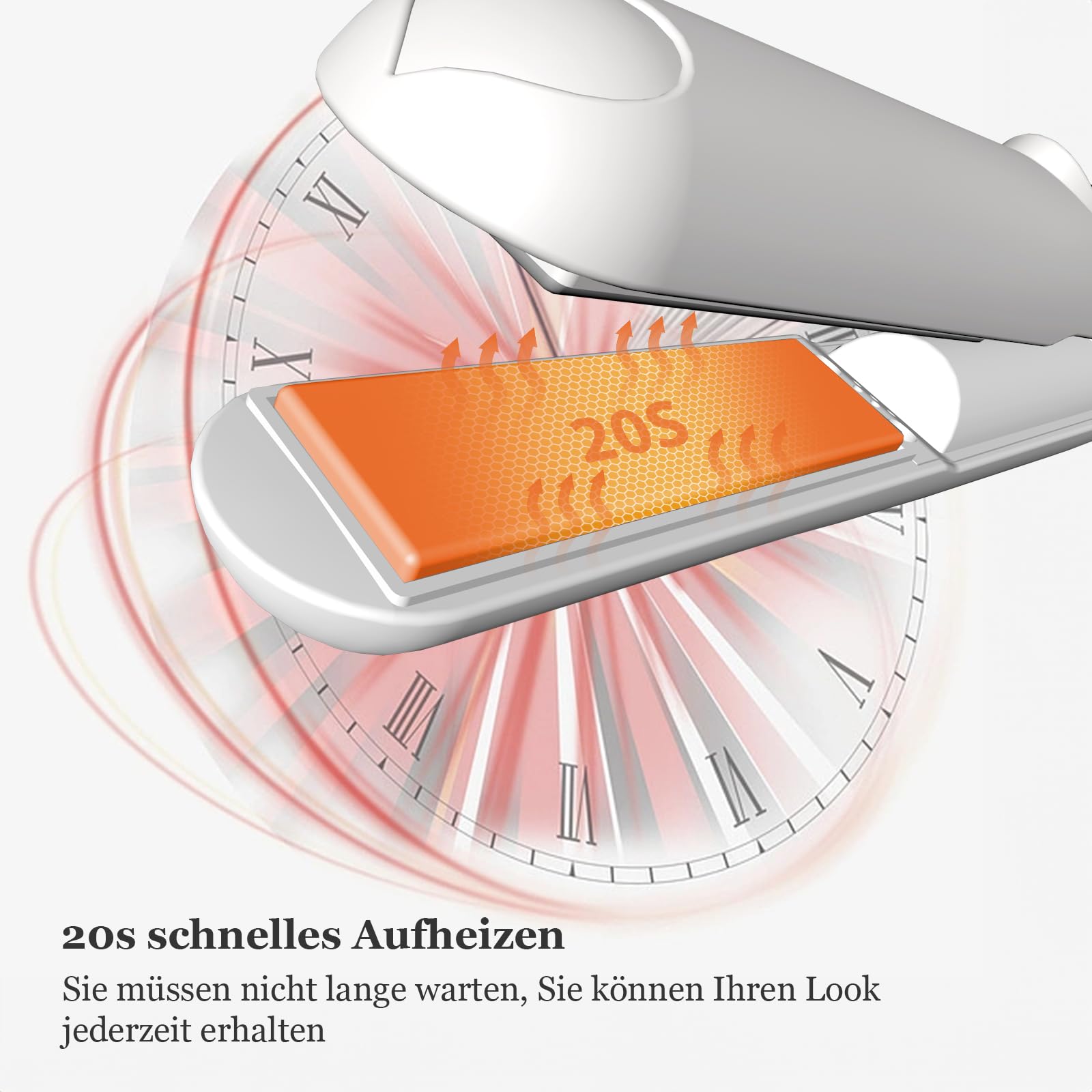 - 【Schnelles Aufheizen in 20 Sekunden, Anti-Verbrühungs-Design】 Dieser Glätteisen heizt in nur 20 Sekunden schnell auf und die hochwertige Keramik-Heizplatte erwärmt sich gleichmäßig, sodass Sie in drei Minuten eine perfekte Frisur kreieren können. Außerdem reduziert es Hitzeschäden und sorgt für glänzenderes Haar, während es gleichzeitig dafür sorgt, dass Sie sich nicht verbrennen. Keine Angst mehr vor Verbrennungen.