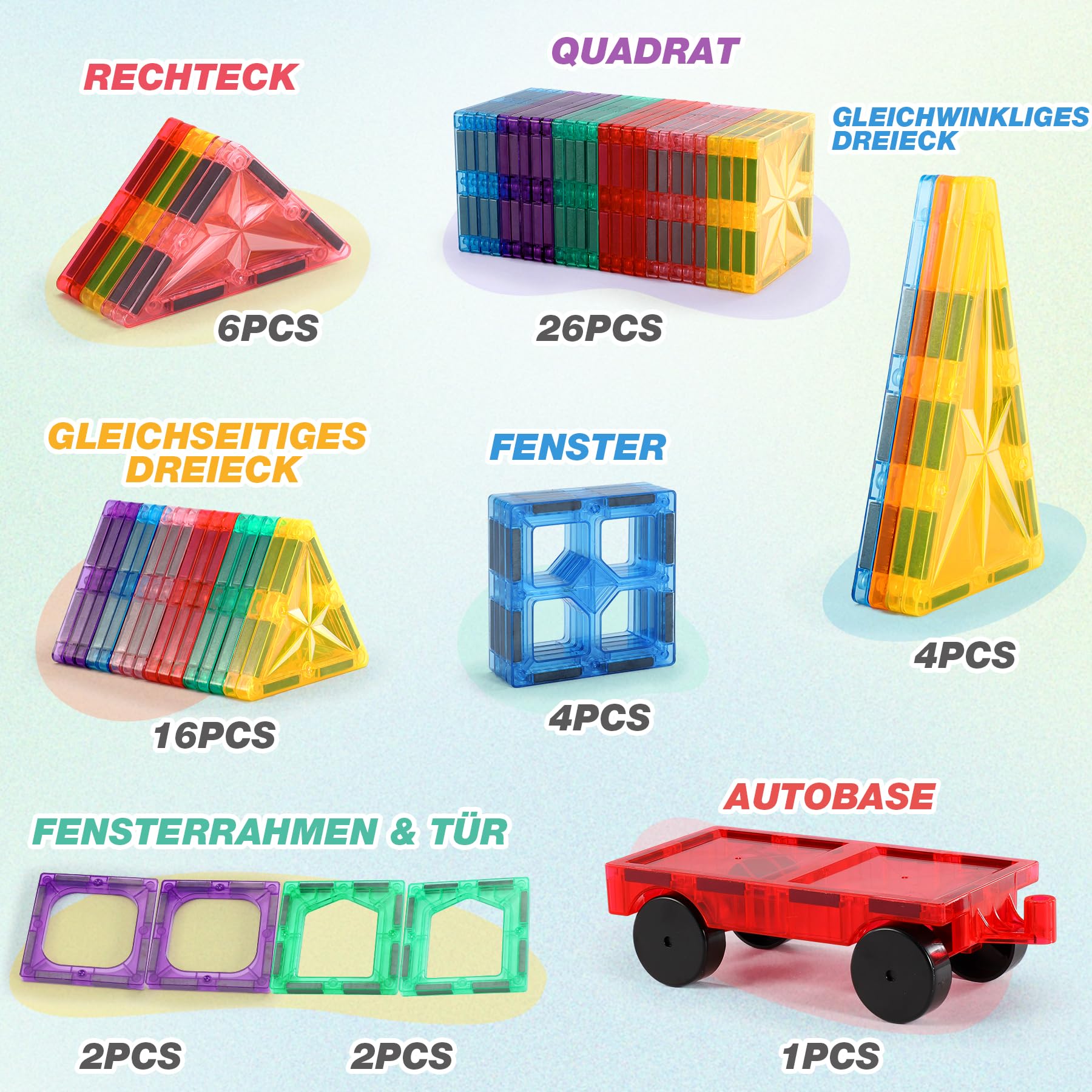 - [Reise-Essentials] - Unsere magnetbausteine sind leicht zu reinigen und eignen sich besonders gut für Reisen. Wenn Sie reisen, können Sie einen kleinen Stapel von ein oder zwei Formen mitnehmen, die gut zusammenspielen, und müssen sich nicht um viele klobige Teile und lose Teile kümmern