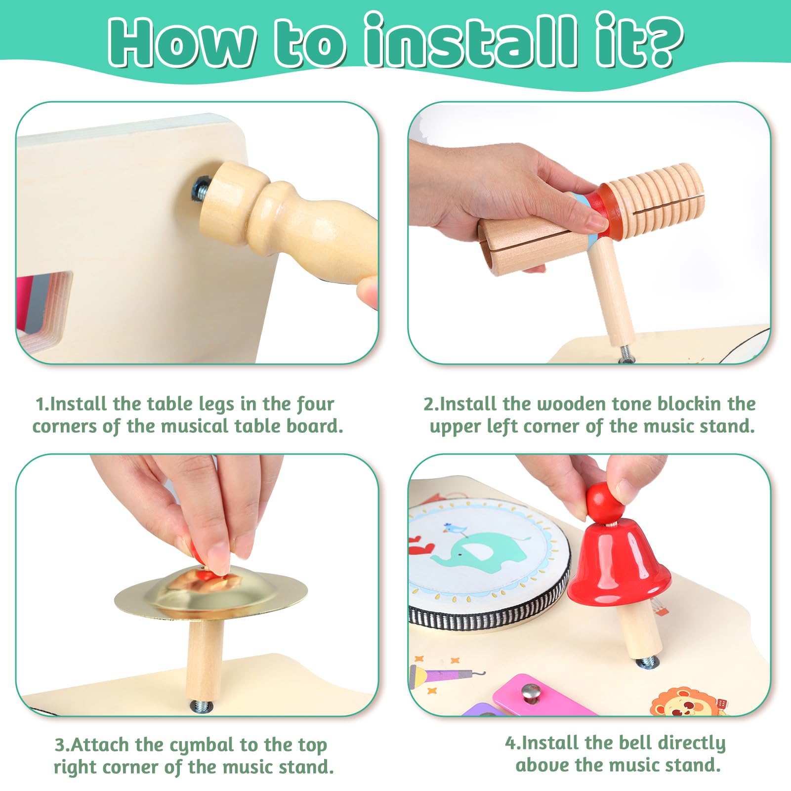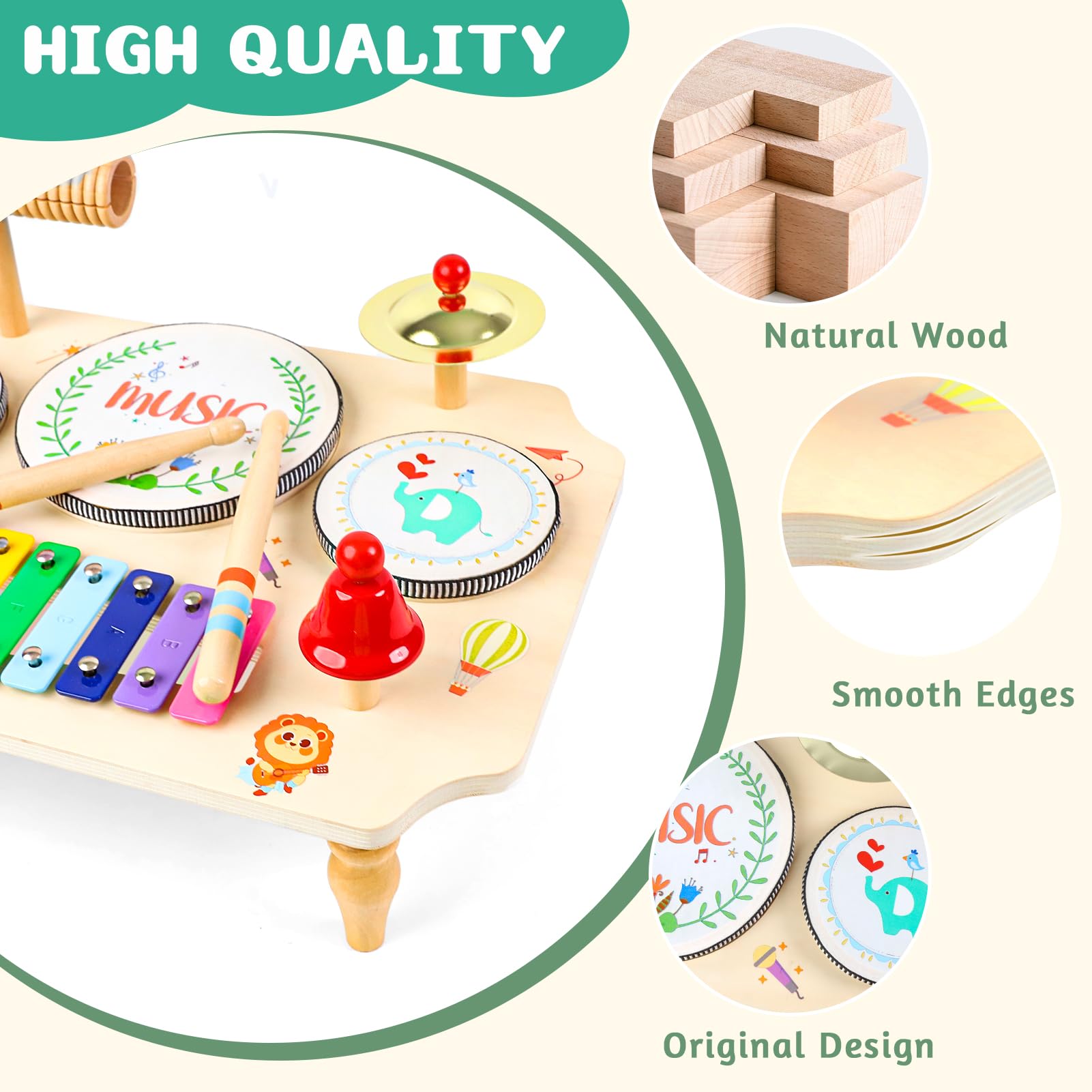 - 🎸【11-in-1 Schlagzeug Kinder Set】Dieses Musikinstrumenten-Set für Kinder ab 1 Jahr fördert das musikalische Interesse Ihres Kleinkindes. Es enthält 1 * Musiktisch mit Xylophon, 1 * Holz-Tone-Block, 4 * Holzstäbchen, 3 * Trommeln, 1 * Becken und 1 * Glocke. Mit verschiedenen Instrumenten können sie unterschiedliche Melodien spielen, von sanften Brisen bis hin zu majestätischen Tälern und lebendigen Vogelklängen.