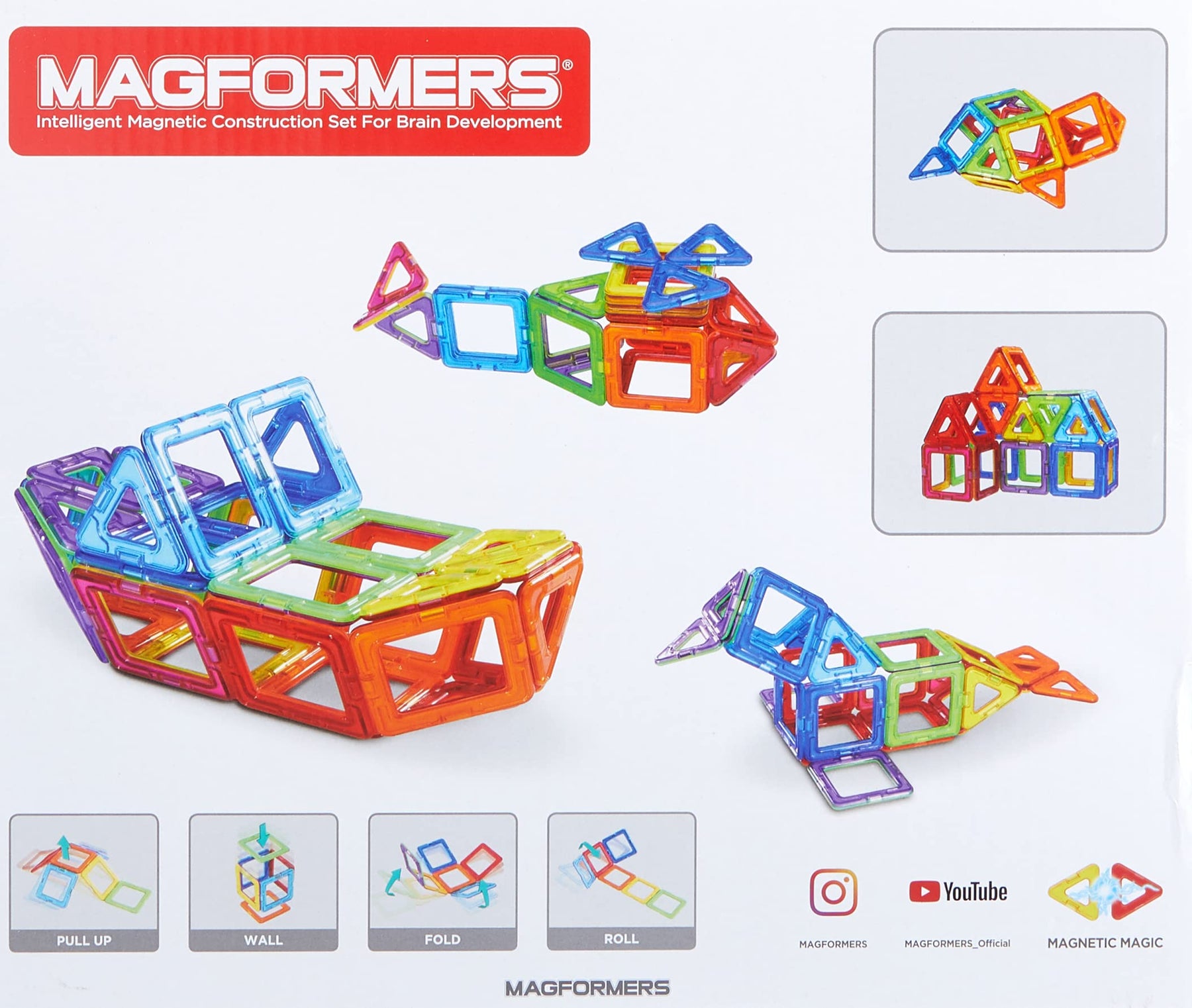 Unterhaltsam und pädagogisch wertvoll - Magformers ist ideal, um die Kreativität und geistige Entwicklung zu fördern. Entdecken und experimentieren Sie mit allen geometrischen Formen, um einfache oder komplexe 3-D Modelle zu bauen. Fühlen Sie die magnetische Kraft und haben Sie viel Spaß mit den vielen Konstruktionsmöglichkeiten der Magformers. Magformers unterstützt Kinder dabei, zahllose Formen herzustellen. Außerdem fördern sie die Fähigkeit von Kindern, neue Formen und Ideen zu erschaffen. Magformers unterstützt Kinder dabei, geometrische Formen aus der Mathematik wie z.B. Tetraeder oder Polieder zusammenzustellen. Während die Kinder spielen, erwerben sie gleichzeitig mathematische Fähigkeiten. Magformers Grundlagen begeistern nicht nur Kinder, sondern auch Erwachsene. Sie helfen beim Lernen und dabei, wissenschaftliche Zusammenhänge zu begreifen, welche normalerweise als schwierig betrachtet werden. Auch chemikalische Strukturen lassen sich hiermit wunderbar veranschaulichen und erlernen. Magformers unterstützt Kinder dabei, ihre erfinderischen Fähigkeiten auszubauen, indem sie fantasievolle Formen zusammenbauen. Magformers unterstützt Kinder dabei, reale Konstruktionen wie Brücken, Türme und sonstige Bauten zu kreieren. Magformers unterstützt Kinder dabei, verschiedene Polieder zu bauen, um elementare Formen und Magnete aus der Theorie zu verstehen. Magformers regt die linke und rechte Hälfte des Gehirns an. Die Benutzung beider Hände fördert die gleichgewichtige Entwicklung des Gehirns. Magformers erweckt natürliche Neugier in den Kindern und trägt dazu bei, das Selbstbewusstsein durch das Bauen von interessanten und beeindruckenden Formen auf eine spielerische Art und Weise zu stärken.