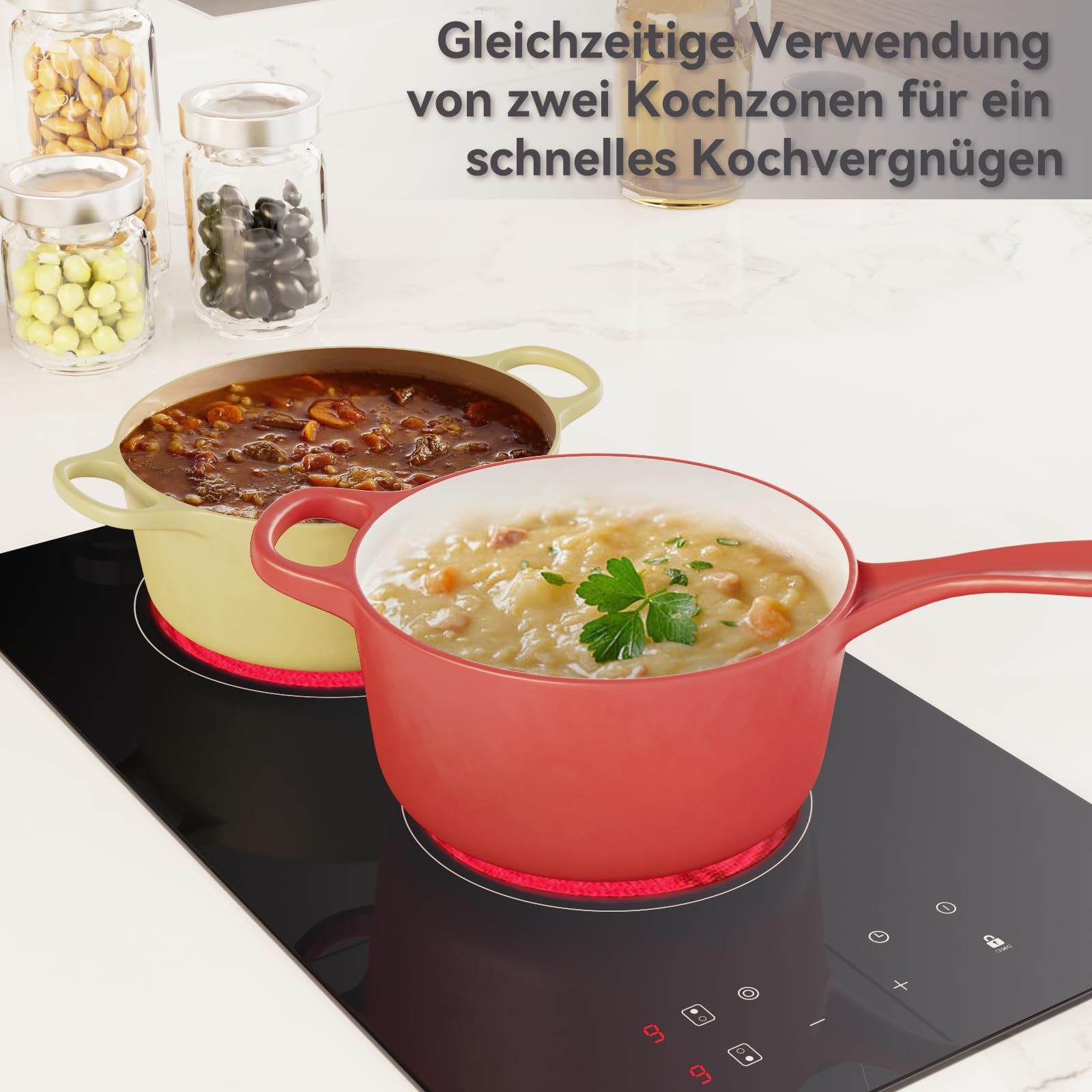 - 【Multi-Funktionen】Das magicplux 2 Zonen Glaskeramikkochfeld ist mit einer Doppelzone zum Kochen, mit Timer, Kindersicherung und weiteren Funktionsmöglichkeiten ausgestattet. Es ist ein Küchenbegleiter für die moderne Familie.