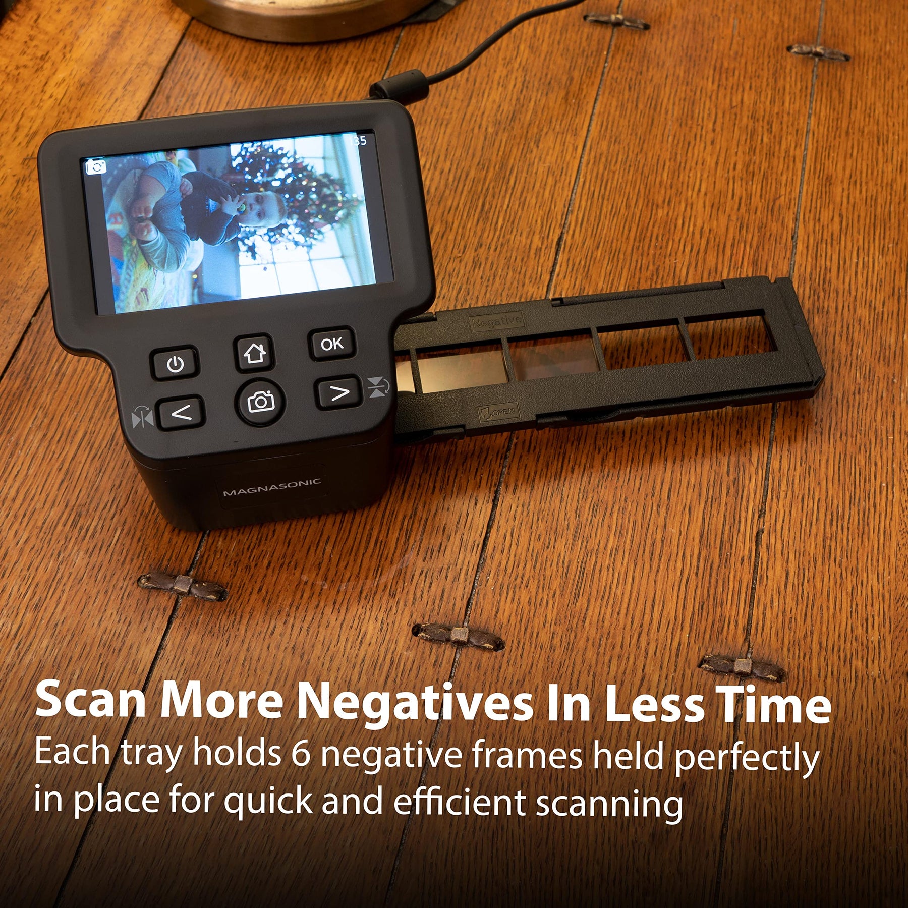 • Scannen Sie mehr Negative in kürzerer Zeit – jede Filmhalterablage passt bis zu 6 negative Rahmen, die perfekt an Ort und Stelle gehalten werden, um schnelles und effizientes Scannen zu ermöglichen
