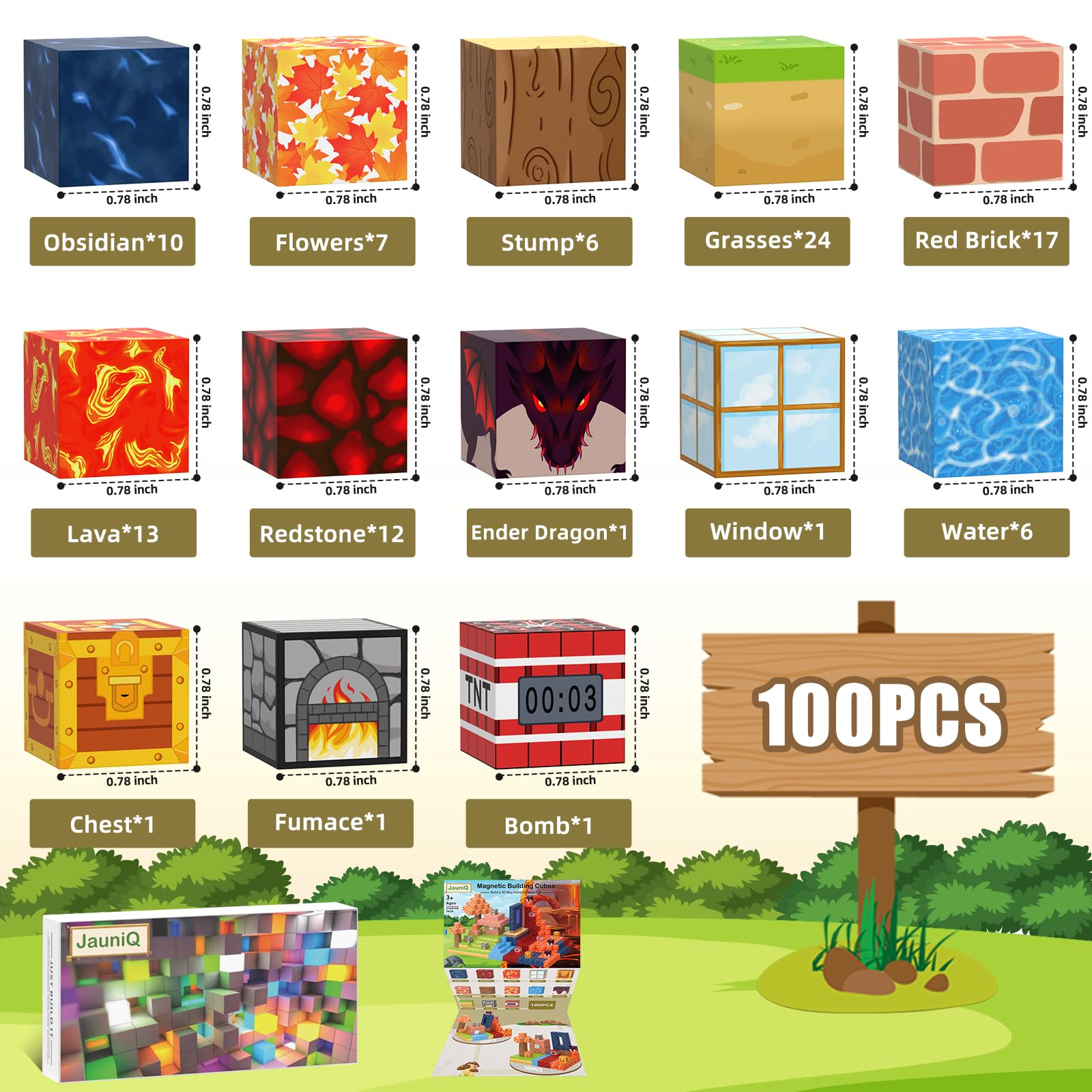 Magnetische Bausteine Blöcke 100 Teile Magnetische Fliesen Kleinkindspielzeug für Jungen und Mädchen ab 3 Jahren, Kreative Kinderspielzeug- Baue Mine Magnet Schwert Welt Magnetic Building Blocks