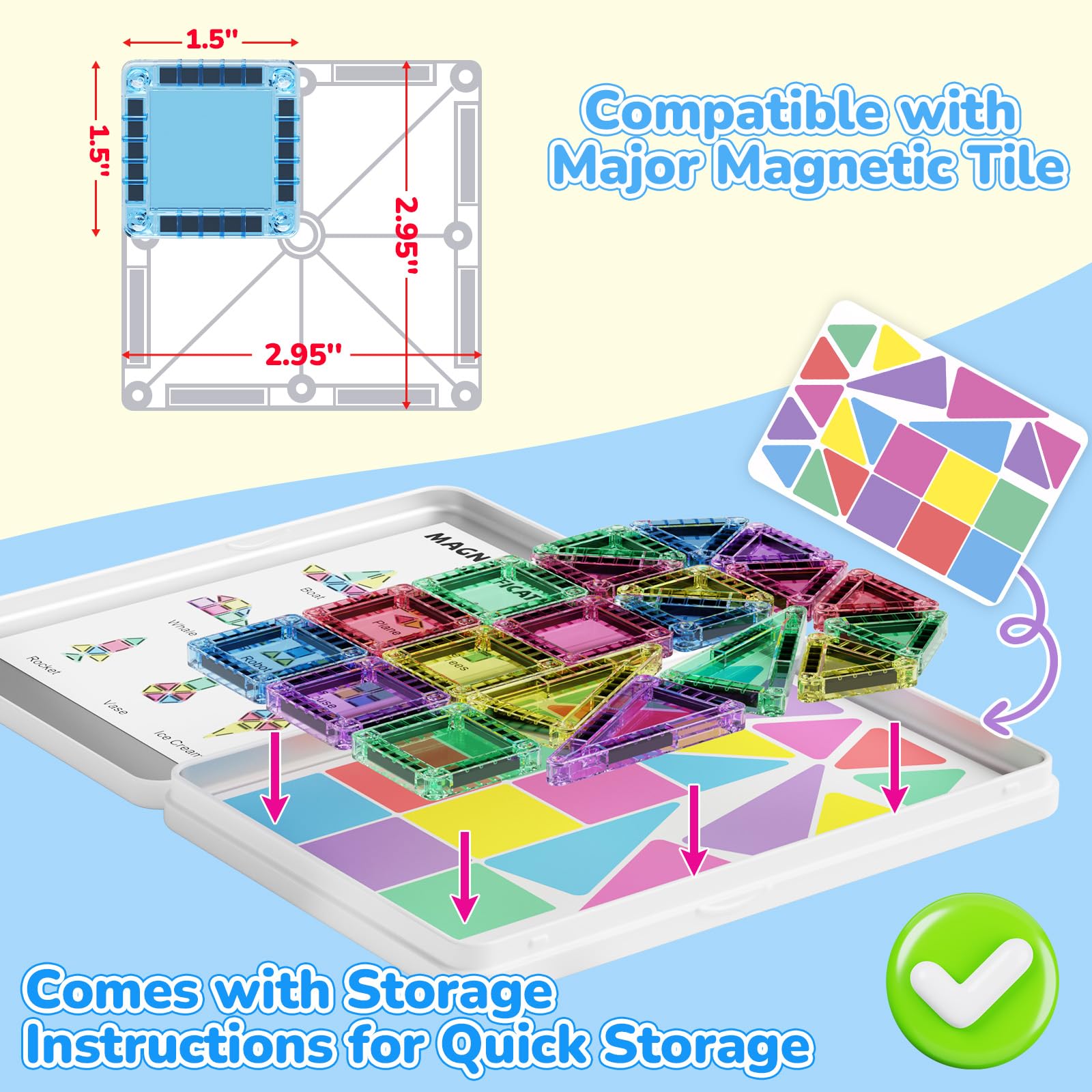 - Erweiterbarer Bauspaß – Kompatibel mit anderen Magnetspielzeugen, Kombinieren Sie die magnetischen Konstruktionsblöcke mit Sets anderer Marken, um komplexere Modelle zu bauen und die Lernmöglichkeiten zu erweitern.