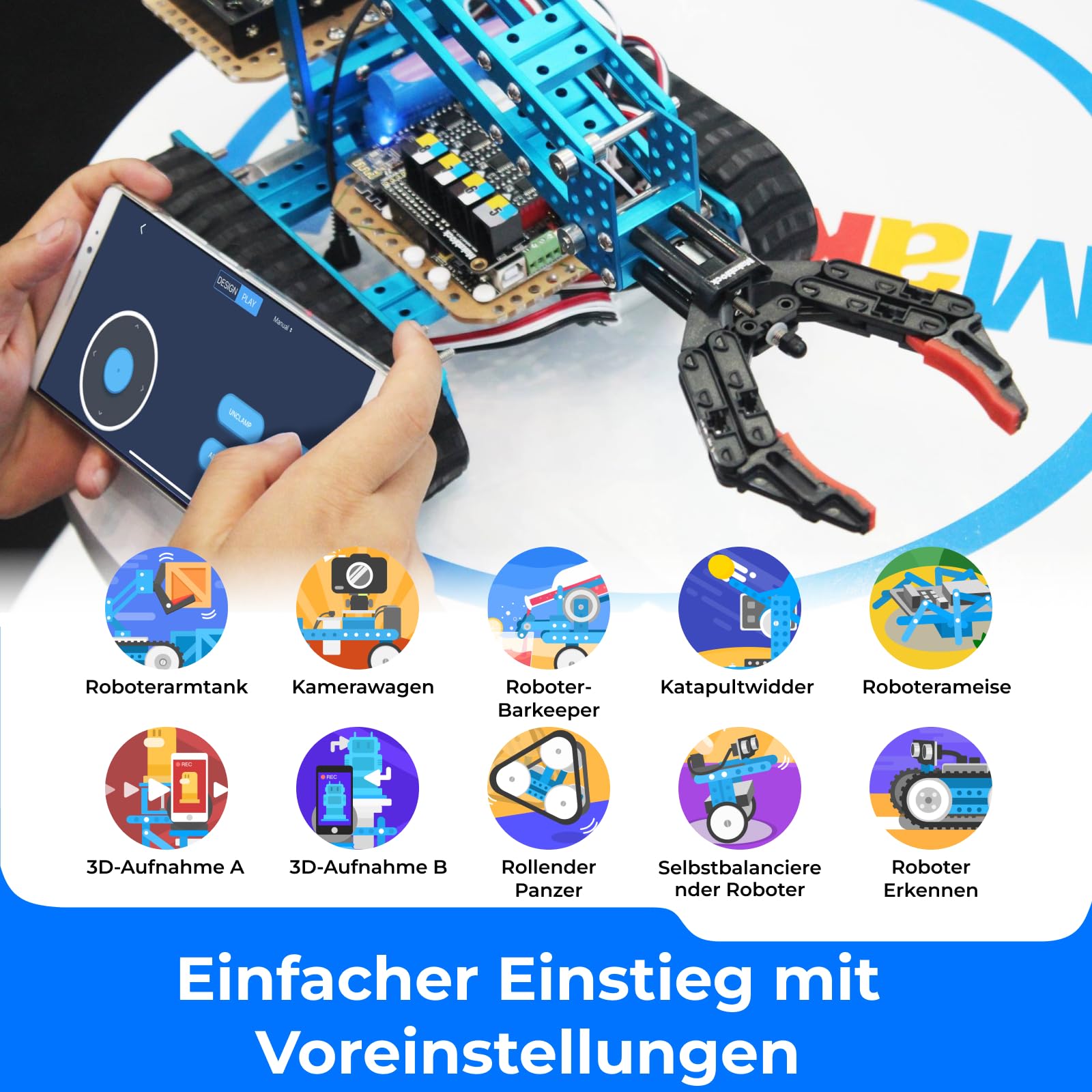 - 【10 in 1 Transformierbarer Roboter】 Roboterarmpanzer, Roboterbarkeeper, 3D-Erfassung, Roboterarmpanzer, Roboterbarender, 3D-Erfassung, selbstausgleichender Roboter, Roboterameise, rollender Panzer, Erkennungsroboter, 3D-Erkennung usw., mehr als 160 Mechanische Teile und elektronische Module, die bereitgestellt werden, um Ihren eigenen Roboter für verschiedene Robotikprojekte zu bauen. Wir bieten auch Benutzerhandbücher und Online-Lernressourcen an, um die Programmierung zu erleichtern.
