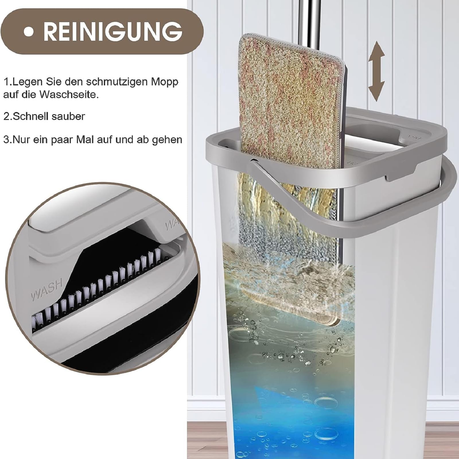 - 💧【Halten Sie Ihre Hände sauber】- Mit diesem automatischen Eimer-Reinigungsmopp müssen Sie sich nicht bücken oder das schmutzige Moppwasser erneut berühren. Das fortschrittliche Zweikammersystem kann den Mopp schnell und einfach reinigen und auswringen. Einfach eintauchen, reinigen und trocknen.