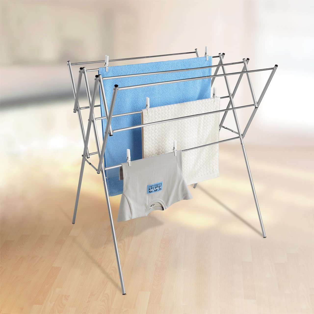 - Individuell: Die Maße (B x H x T): 54-92 x 96,5 x 65,5 cm passen sich den räumlichen Gegebenheiten individuell an. So kann der Wäschetrockner auch ideal als Handtuchständer im Bad genutzt werden.