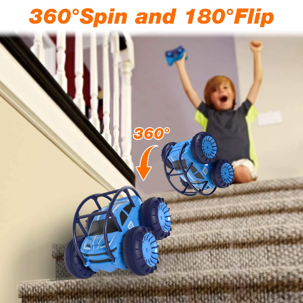 - 【360°Cool Stunts】 Dieses interessante ferngesteuerte Auto, design ermöglicht flexible 360 ° Flips und Drehung. Dank kühler LEDs auch nachts super. High Speed Leistungsstarker Motor, Upgraded thermoplastic tire Stärker und verschleißfest bieten Sie ein realistisches Fahrerlebnis. Dieses Stunt auto Spielzeug bietet unbegrenzten Spaß für Ihre Kinder.