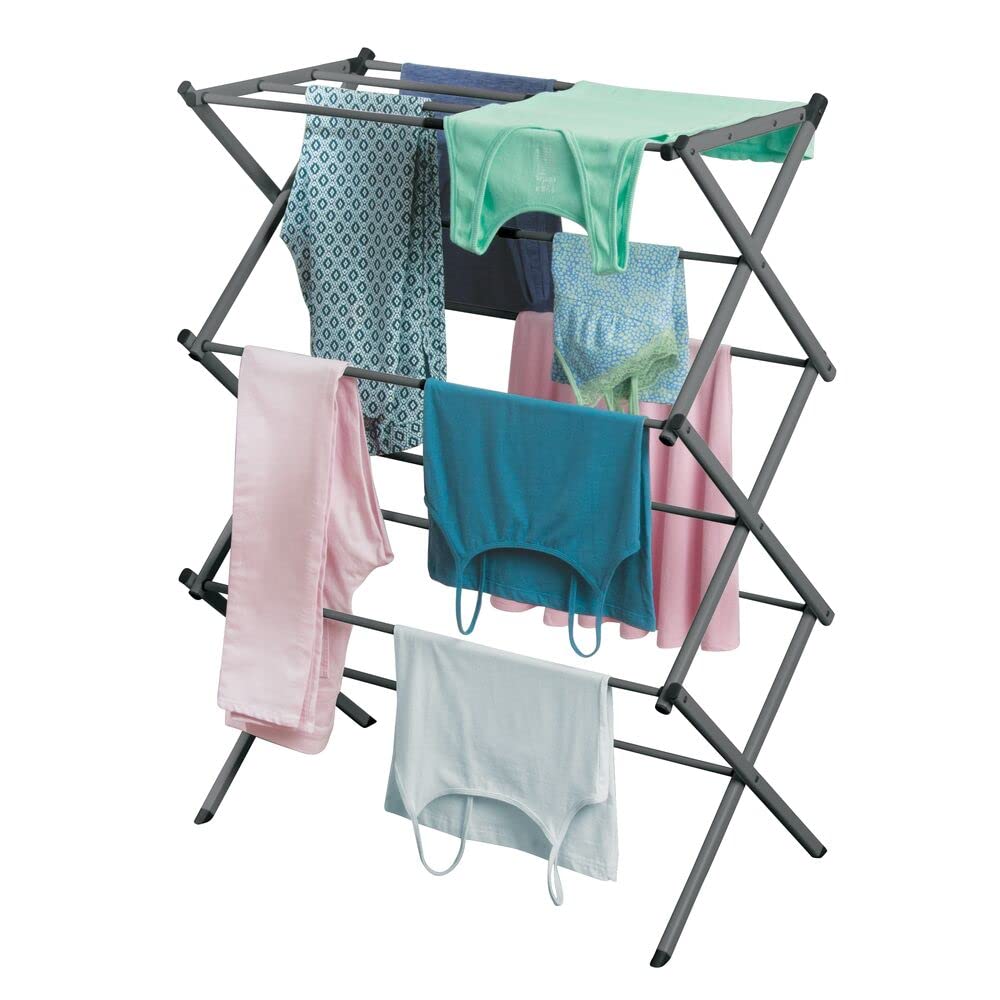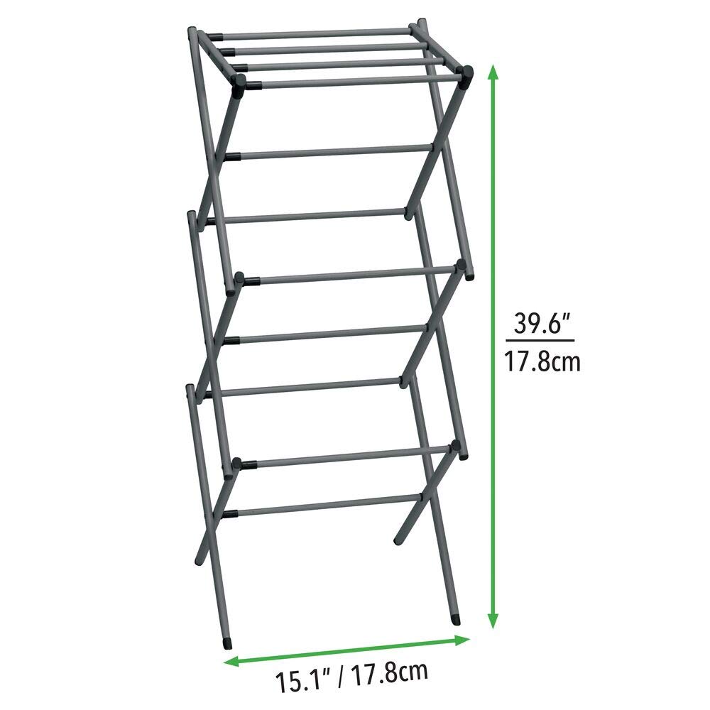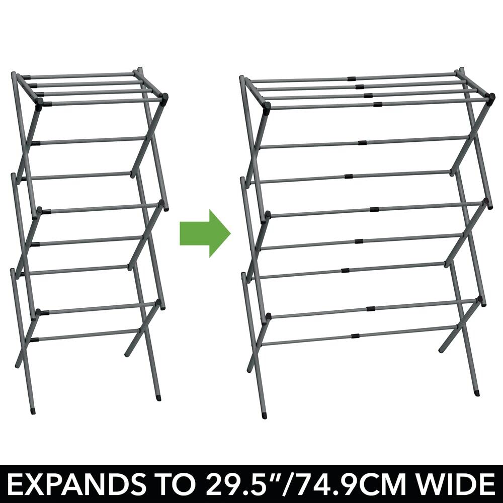 mDesign ausziehbarer Turmwäscheständer – Wäscheständer aus Metall mit 3 Ebenen – platzsparender Standtrockner für Wäscheküche, Garten oder Haushaltsraum – dunkelgrau
