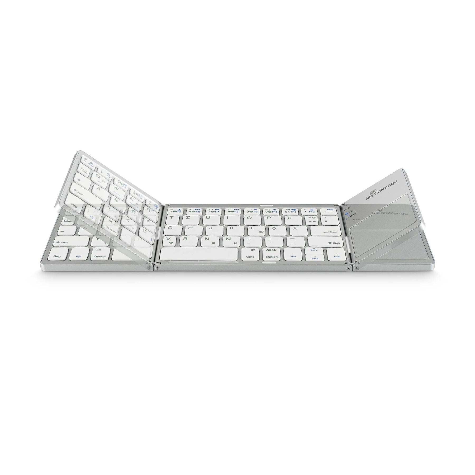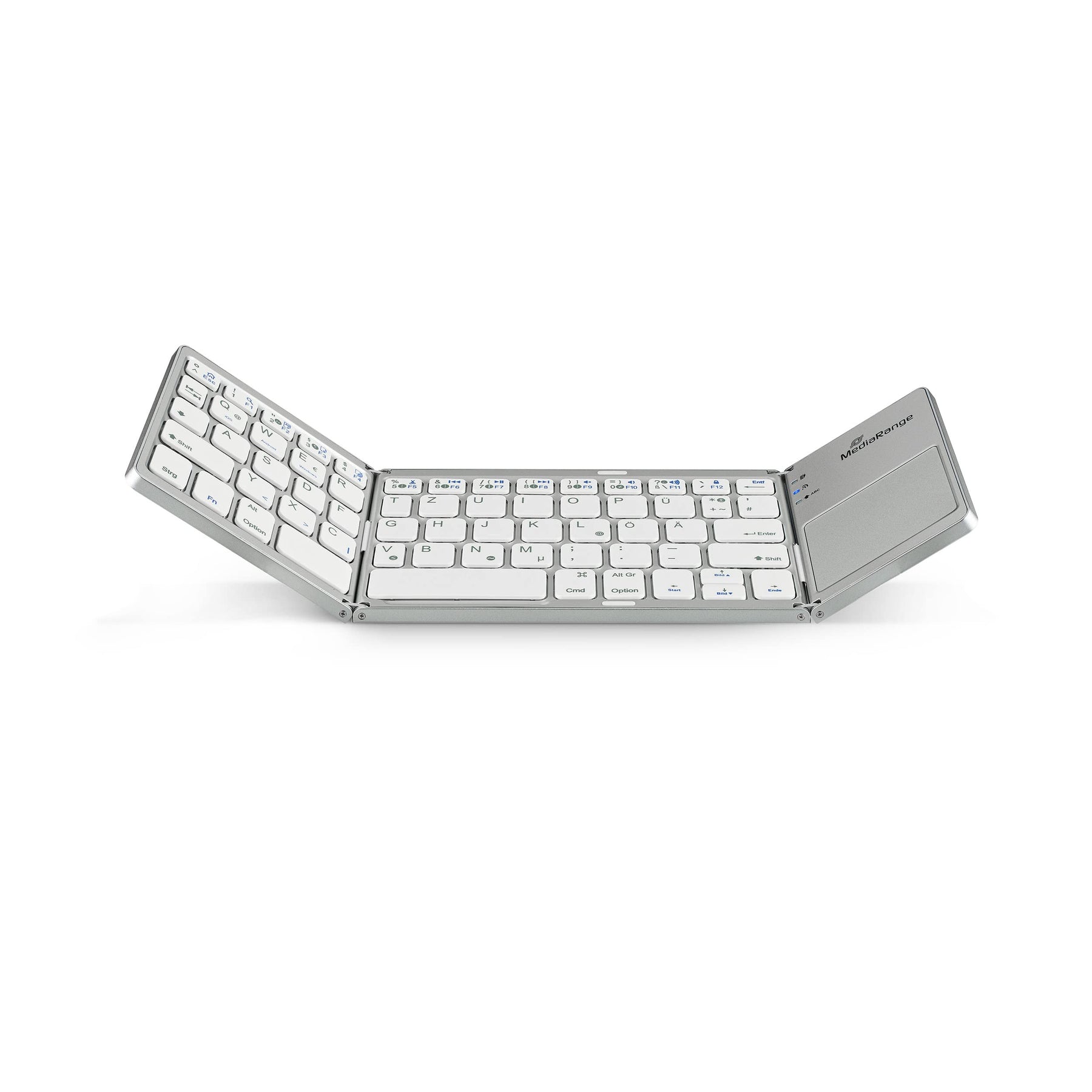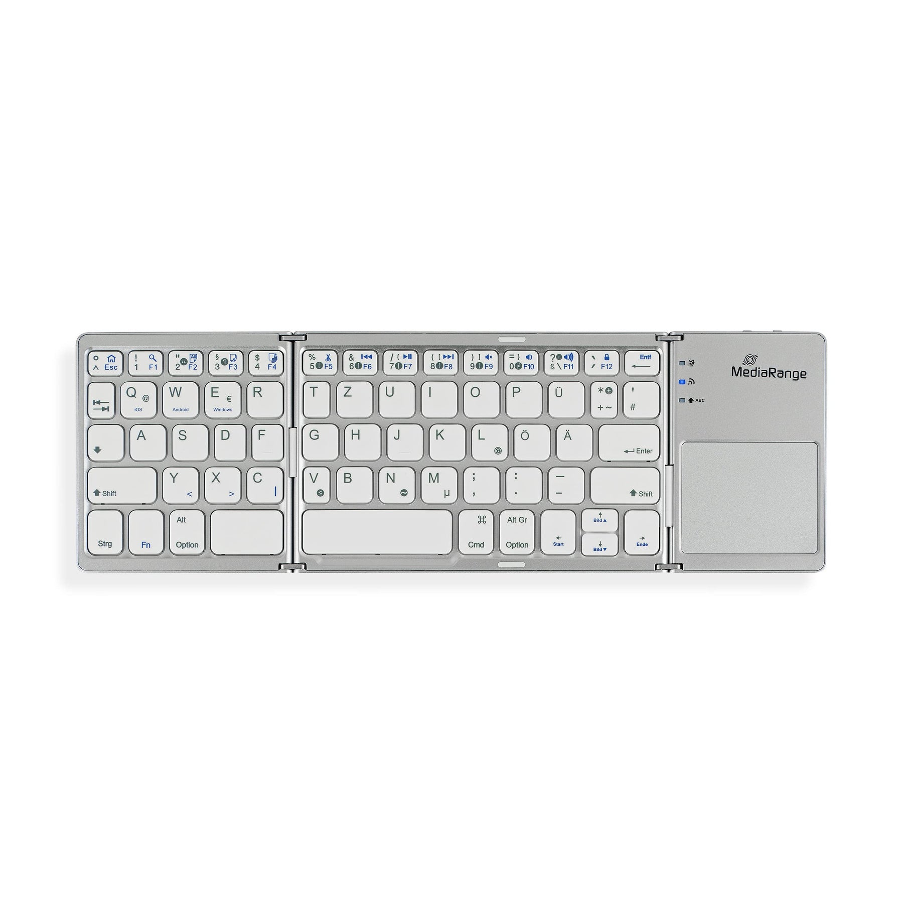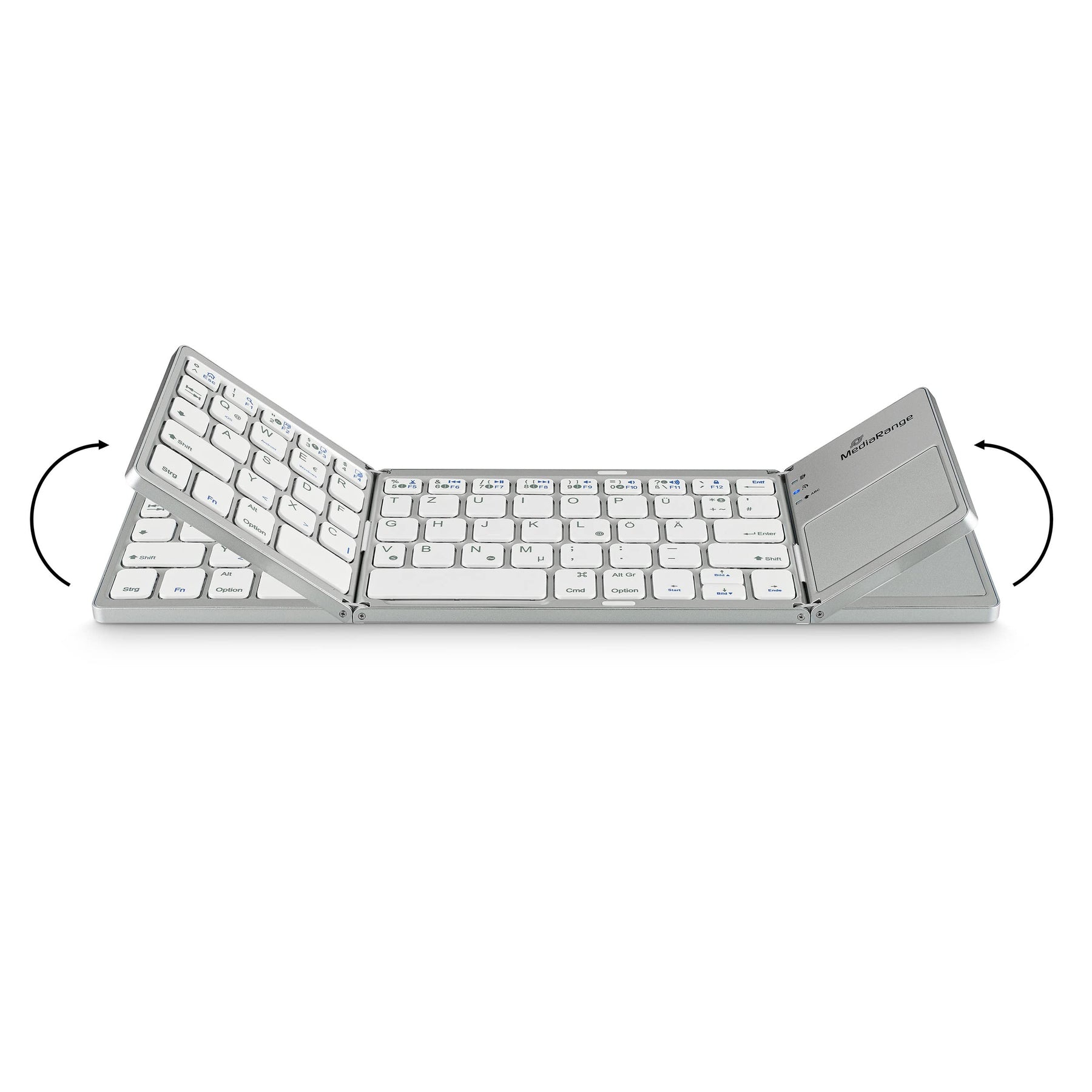 MediaRange kompakte Funk-Tastatur mit 63 Tasten und Touchpad, QWERTZ (DE/AT/CH) Tastaturbelegung, silber