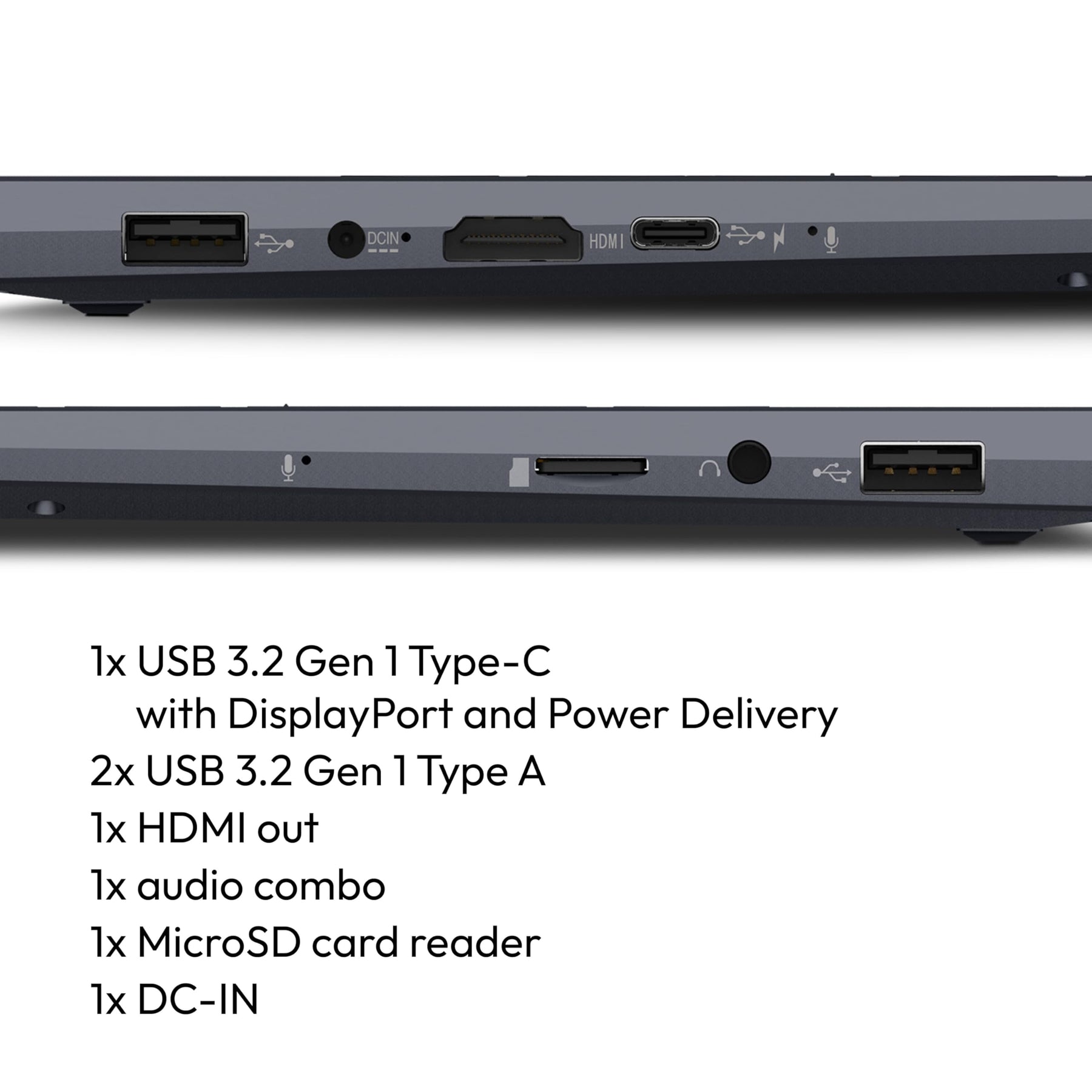 Einzelheiten: Intel; Core i5-13420H Prozessor (bis zu 4,60 GHz, 8 Kerne (4 P-cores & 4 E-cores), 12 Threads & 12 MB Intel; Smart Cache) Windows 11 Home Mattes 40,6 cm (16,0”) Full HDPlus Displaymit einer Auflösung von 1.920 x 1.200 Pixel und IPS Technologie Seitenverhältnis: 16:10 Intel; UHD Graphics 1 TB PCIe SSD 16 GB LPDDR5 Arbeitsspeicher mit bis zu 6.400 MT/s