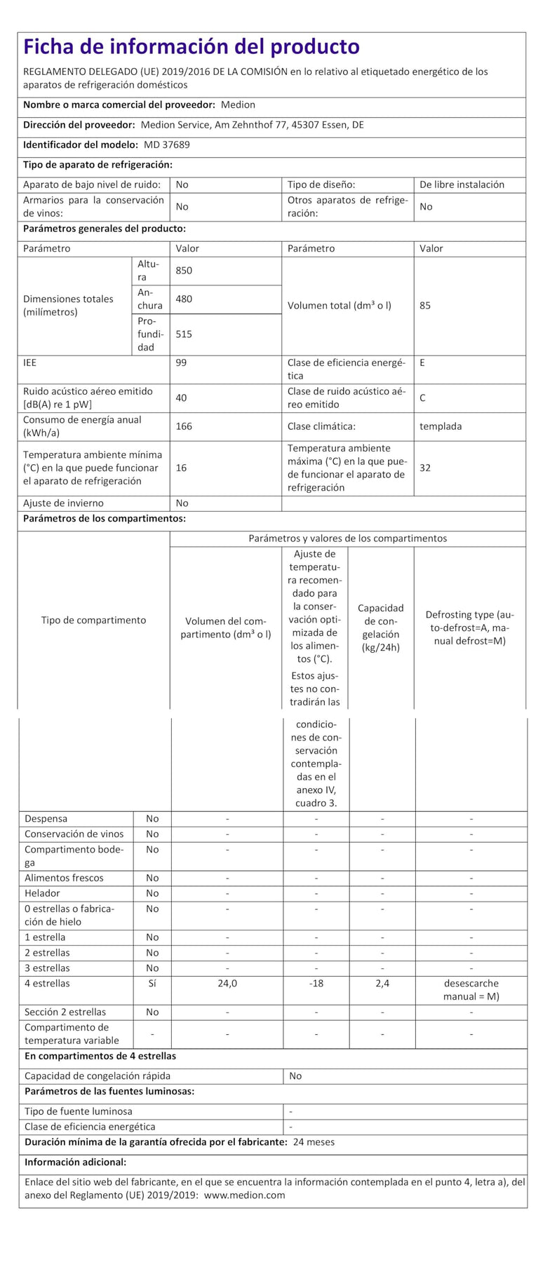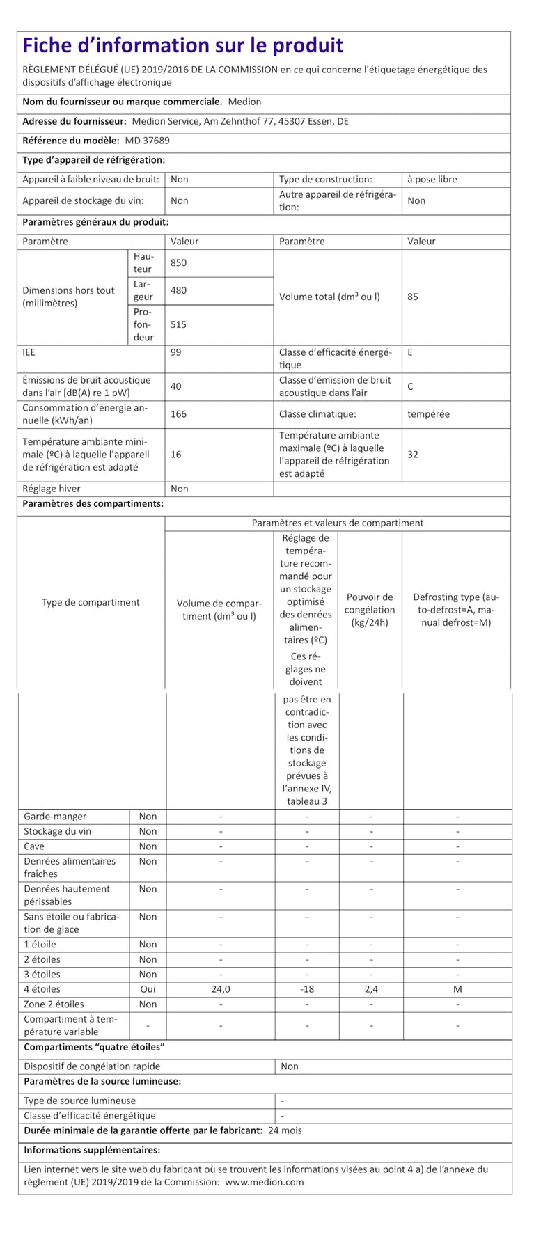 - Lieferumfang: MEDION Mini Kühl- und Gefrierkombination MD 37689, Eierablage, Eiswürfelbehälter