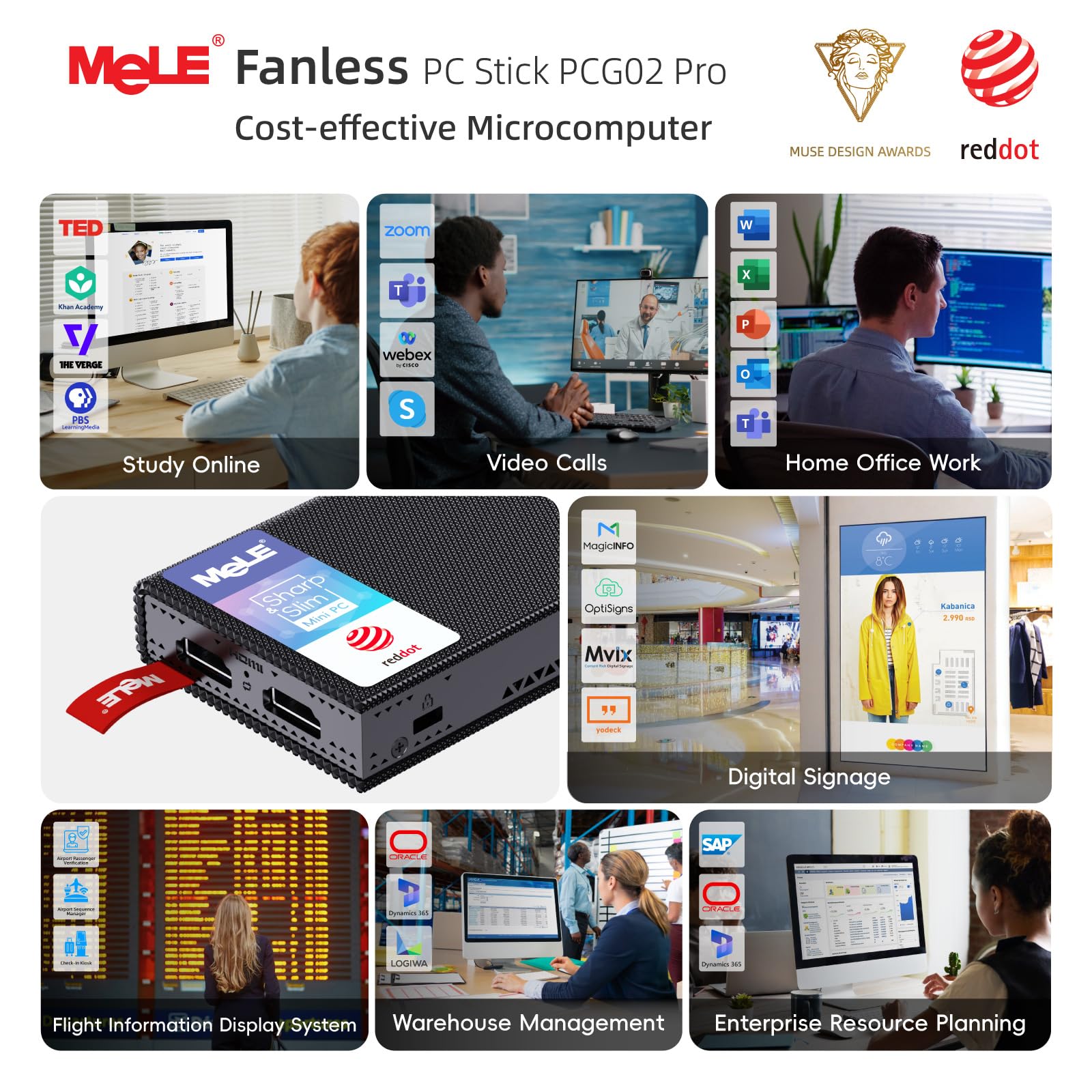 - Duales HDMI2.0 4K@60Hz-Display – Dieses PCG02 Pro-Modell ist produktiver und effektiver als der PCG02-Computerstick und verfügt über zwei HDMI-Anschlüsse. Sie unterstützen die 4K@60fps-Ausgabe von zwei verschiedenen oder doppelten Displays, sodass Sie problemlos mehrere Aufgaben und Projekte gleichzeitig bearbeiten können, und eignen sich auch ideal für visuelle Heimvideos.