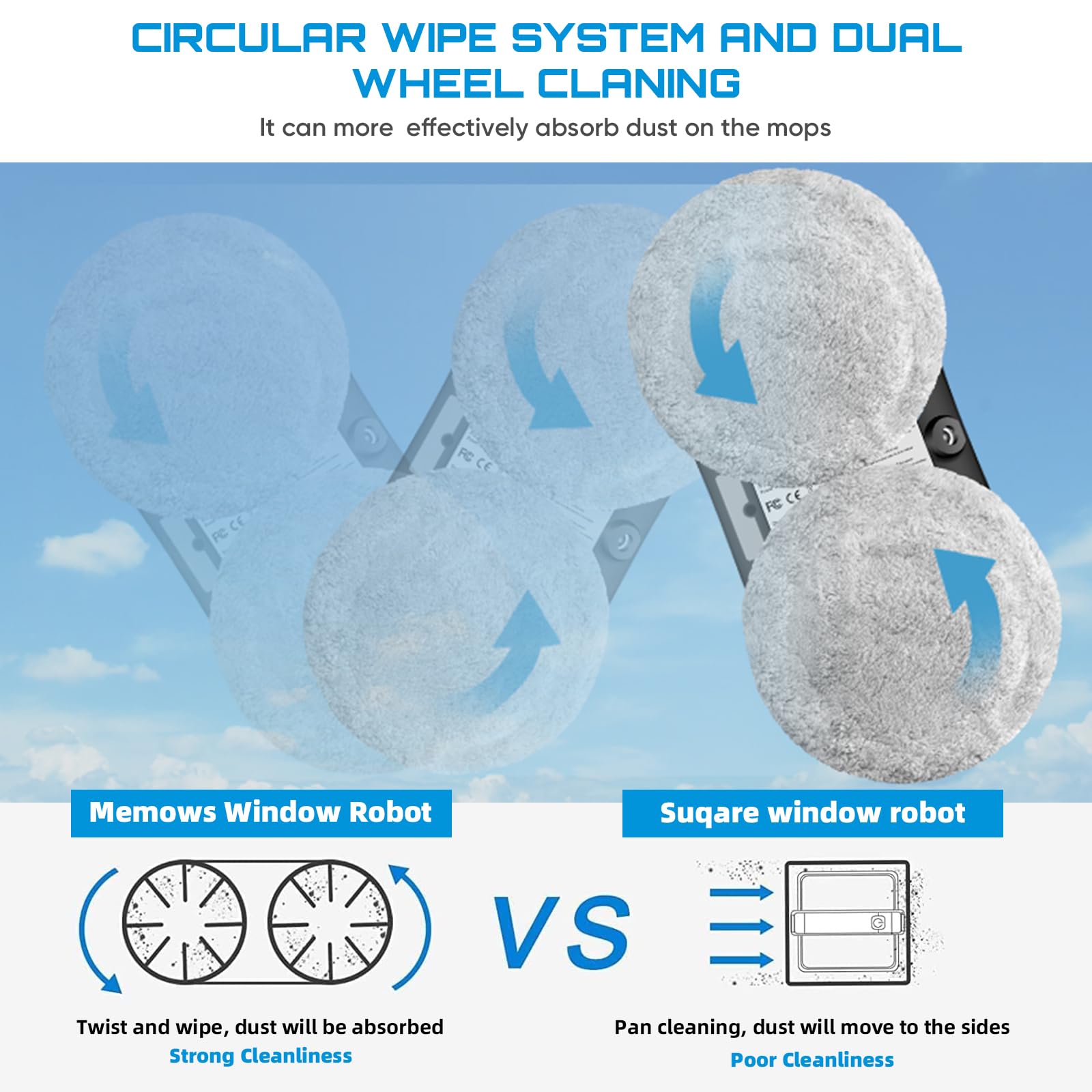 - 🌟【Effiziente Reinigung】 Das Doppelspiral-Wischsystem des fensterwischroboter kann den Schmutz konzentrieren, die rotierende Reinigungsmethode sorgt für doppelte Reinigungskraft.Ausgestattet mit 5 Sätzen (10 Stück) hochdichten Mikrofasertüchern fällt es nicht leicht ab, zerkratzt die Glasoberfläche nicht, wischt Flecken kraftvoll ab und entfernt Schmutz effektiv. All dies kann dazu führen, dass sich der Glasroboter frei um das Fenster bewegen kann. Mit window cleaner robot haben Sie freie Hände.
