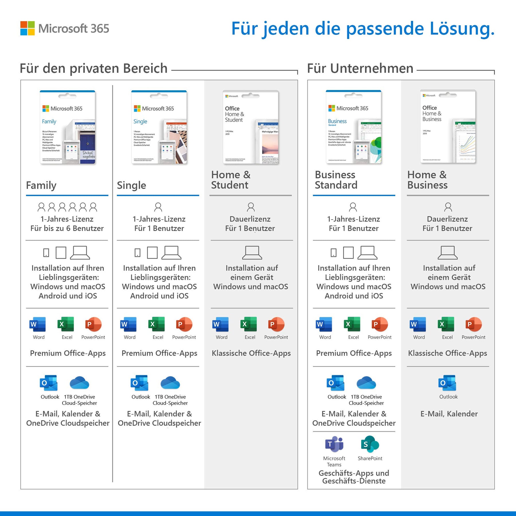 Einzelheiten: Nutzen Sie in der neuesten Office 2019 Version viele nützliche Funktionen der bewährten Desktop-App Word, Excel und PowerPoint. Der beeindruckende Funktionsumfang bietet unter anderem thematisch abgestimmte Design-Vorschläge für Präsentationen. Inhalte können direkt aus dem Internet recherchiert und formiert werden. Mit 3D-Abbildungen und Animationen gelingen Ihnen garantiert spannende Darstellungen. Office für Mac wird unter den drei letzten Versionen von macOS unterstützt. Mit der allgemeinen Verfügbarkeit neuer Hauptversionen von macOS stellt Microsoft den Support für die älteste Version ein und unterstützt stattdessen die neueste und die beiden Vorgängerversionen von macOS. Die Funktionalität und Verfügbarkeit von Produktfunktionen kann auf älteren Systemen variieren. Für eine optimale Benutzererfahrung verwenden Sie die jeweils neueste Version der oben angegebenen Betriebssysteme.