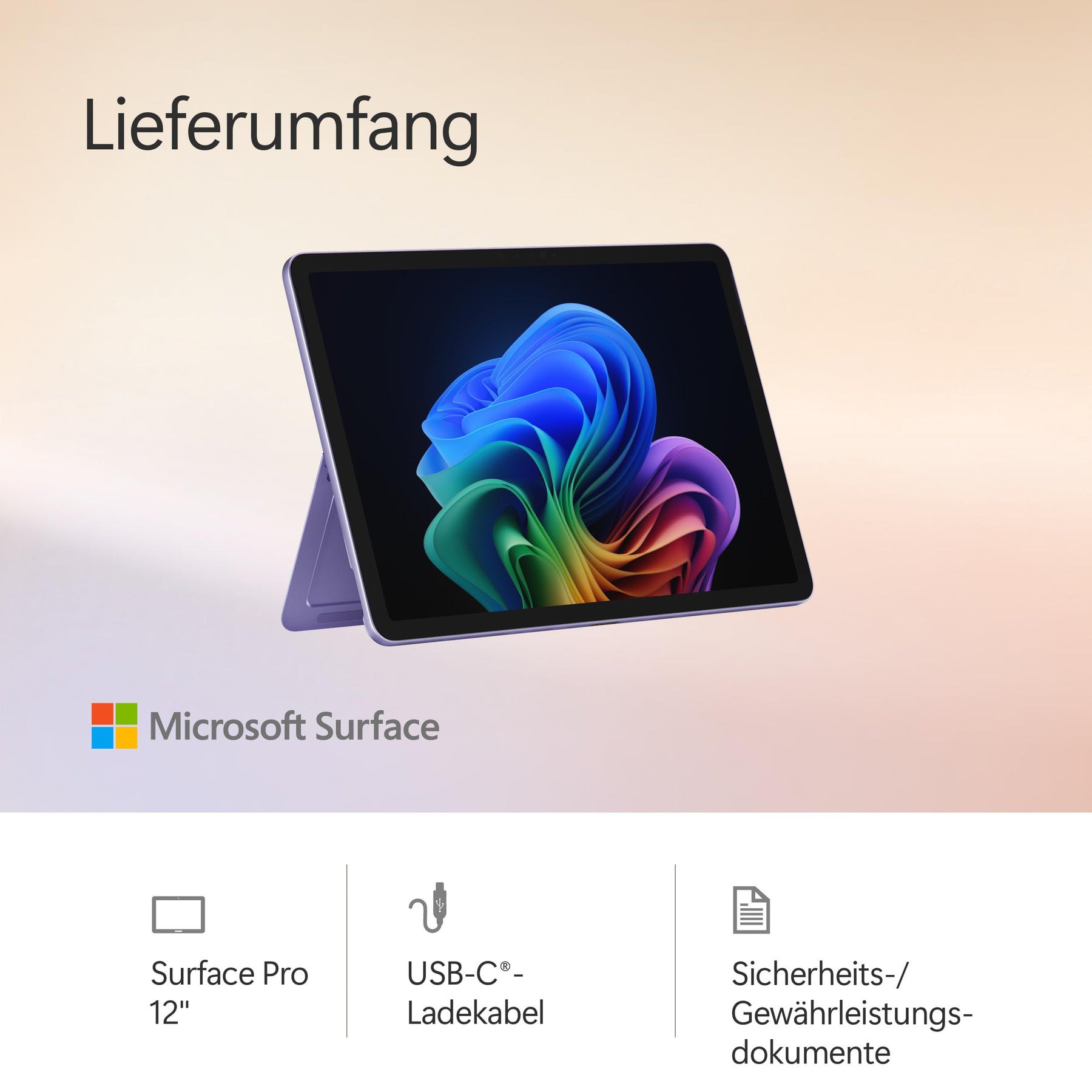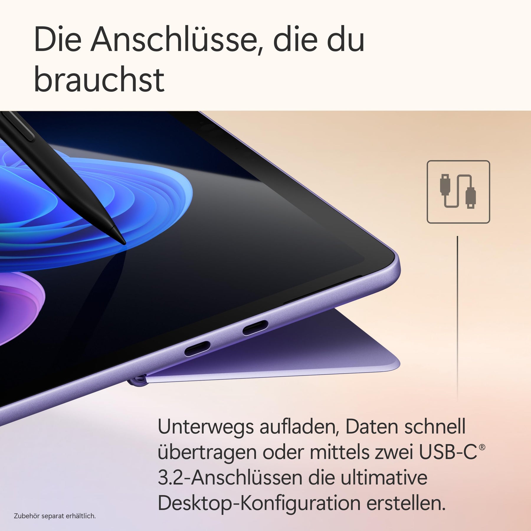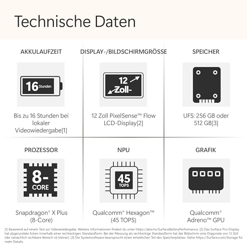 Einzelheiten: Hol dir die gewünschte Flexibilität und die Geschwindigkeit, die du brauchst – mit Surface Pro 12 Zoll, einem Copilot+ PC und dem vielseitigsten Surface. Drücke dich mit Touch, Stimme und dem Surface Slim Pen aus³. Verwende es als Tablet oder nutze das Surface Pro 12 Zoll Keyboard, um ein vollständiges Laptop-Erlebnis zu erhalten³. Zeige deinen Style mit deinem Laptop und der vielfältigen Farbauswahl. Ausgestattet mit all dem und den fortschrittlichen KI-Funktionen, vereint in einem ultradünnen und leichten Gerät, stehen dir noch mehr Möglichkeiten offen, als je zuvor.