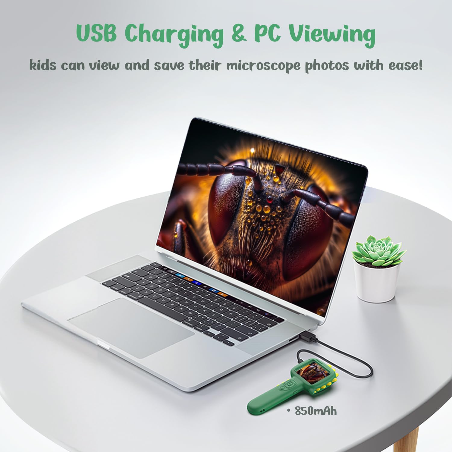 - 【8GB-Karte&USB-Aufladung】8GB-Karte ist im Lieferumfang Enthalten! Unser digitales kids microscope ist mit einem wiederaufladbaren Akku ausgestattet und ermöglicht eine kontinuierliche Nutzung von bis zu 1,5 Stunden nach vollständiger Aufladung. Genießen Sie die fantastische Mikrowelt mit dem Handmikroskop.