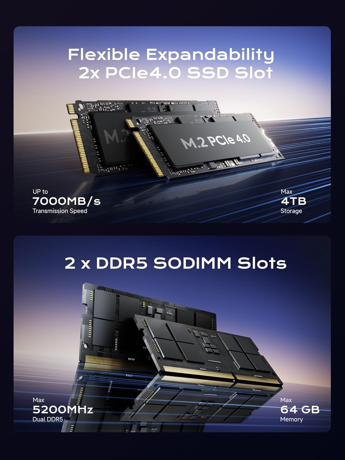 - 【Skalierbare Grafikkarte】Der 795S7 ist mit einer zuverlässigen integrierten AMD Radeon 610M GPU ausgestattet, aber für Benutzer, die zusätzliche Grafikverarbeitungsleistung benötigen, unterstützt er die Installation einer halbdiskreten Grafikkarte wie der Gigabyte RTX4060 OC-8GL . Diese Upgrade-Option macht es zu einer vielseitigen Lösung für Spiele, Inhaltserstellung und grafikintensive Anwendungen. (Hinweis: Separate GPU ist nicht im Lieferumfang enthalten)