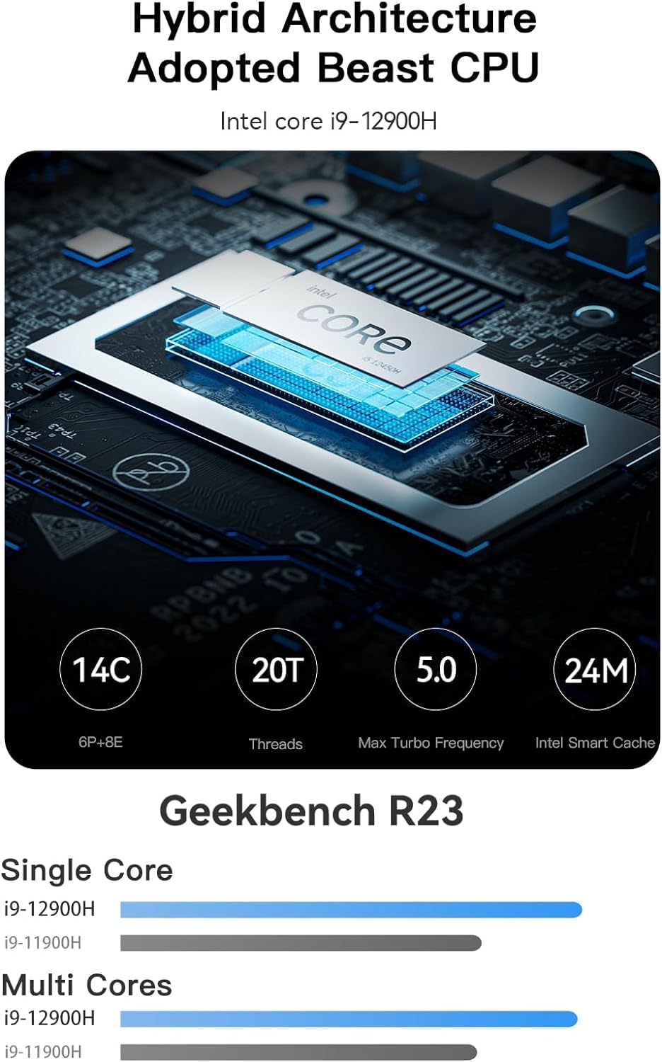 - 【Hervorragende Leistung】Der Mini PC MINIS FORUM MS-01 ist mit einem Intel Core i9-12900H-Prozessor (14 Kerne/20 Threads/bis zu 5,0 GHz), mit integrierter Intel Iris 1,45 GHz-Grafik) mit Xe-Architektur ausgestattet. es macht einen Unterschied. Es wird häufig in den Bereichen Gaming, 3D-Rendering, Videobearbeitung und Telearbeit eingesetzt.