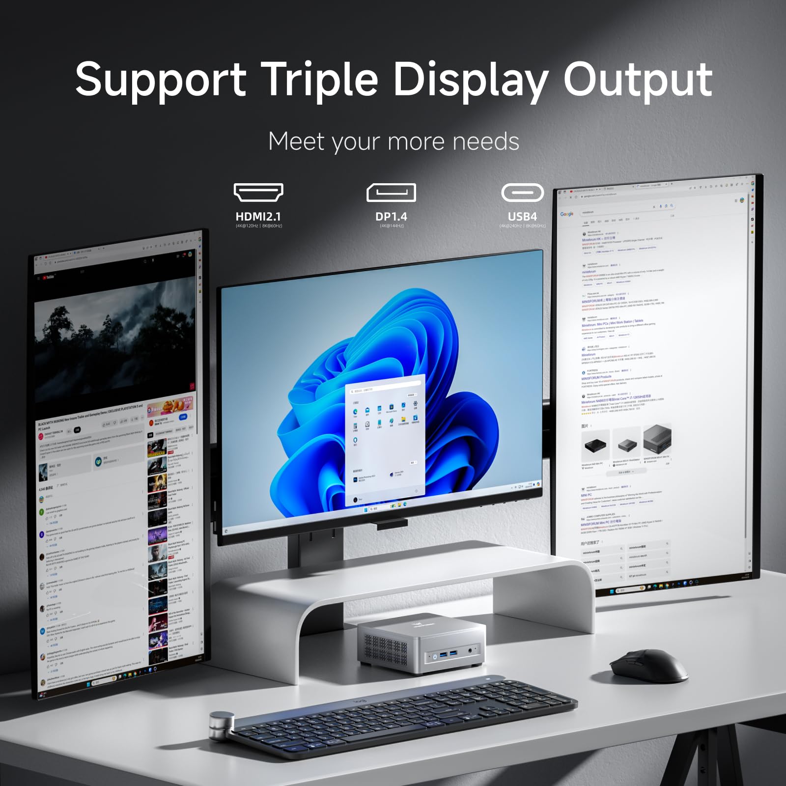 - 【Mehrere Schnittstellen und schnelle Vernetzung】 Der Mini-PC UM870 Slim verfügt über eine Vielzahl von Schnittstellen, darunter 2 USB 3.2 Gen2 Typ-A-Anschlüsse, 2 USB 2.0-Anschlüsse, 1 USB4-Anschluss (Alt PD unterstützt), 1 HDMI-Anschluss, 1 DisplayPort, 1 Audio . und 1 CMOS-Reset-Taste. Es ist außerdem mit einem 2,5-G-Ethernet-Anschluss und einer Wi-Fi 6E/BT5.3-Karte ausgestattet und bietet eine stabile Netzwerkverbindung und schnelle Übertragungsgeschwindigkeit.