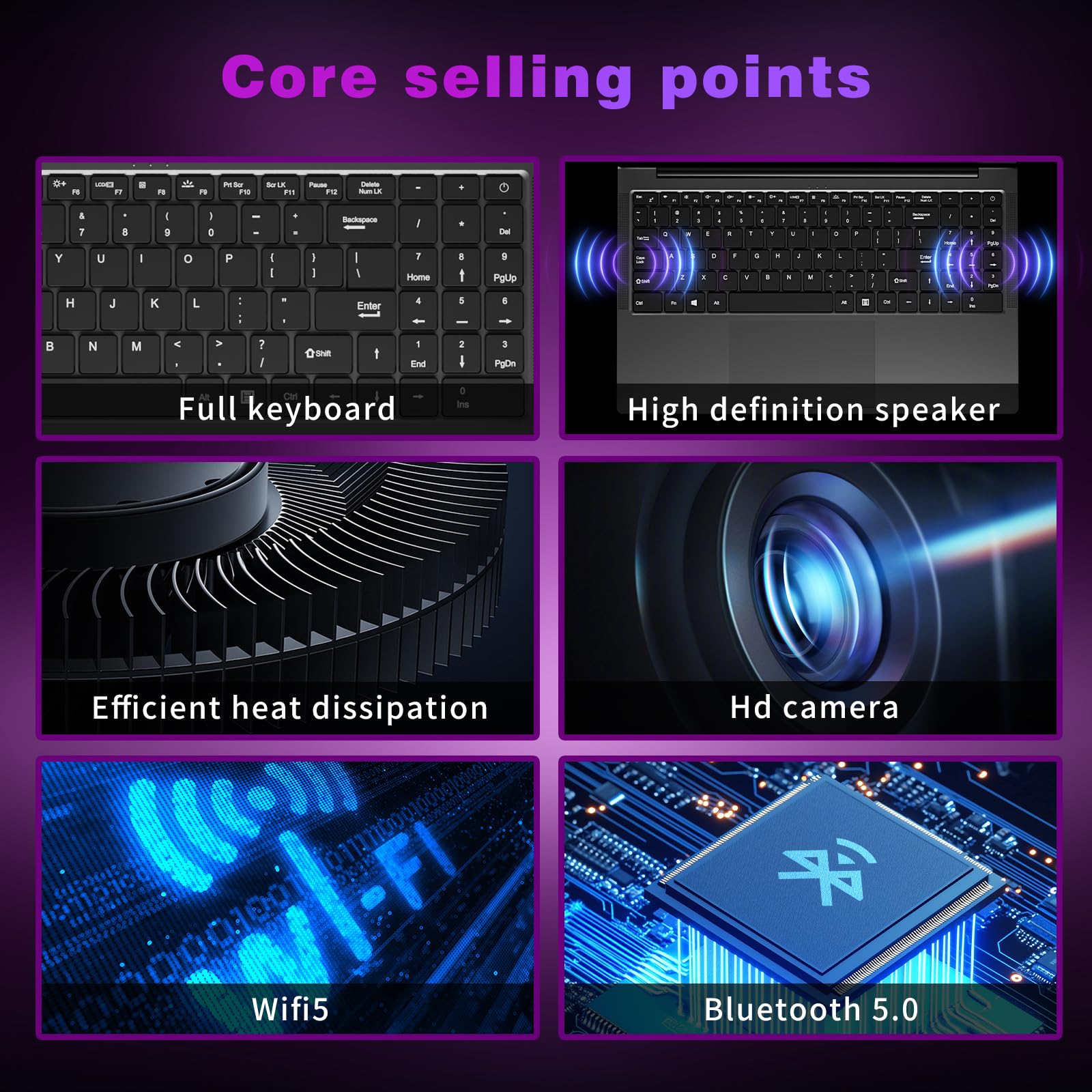 • 【Leicht und tragbar & umfangreiche Schnittstellen】 Leise Wärmeableitung, fern von Lärm. Ultradünnes Gehäusedesign, stilvolles und neuartiges Erscheinungsbild und hervorragende Tragbarkeit. WiFi5 und Bluetooth 5.0 sowie ein 5000-mAh-Akku und eine 30-W-HD-Kamera ermöglichen Ihnen eine nahtlose Verbindung mit der Welt. Sie können Videokonferenzen abhalten, externe Player anschließen, um Musik zu hören, Dateien zu übertragen usw. Dieser Laptop verfügt über Schnittstellen wie Typ-C/USB 3.0*3/Mini HDMI und bietet Ihnen vielfältige Anschlussmöglichkeiten für externe Geräte. Ob Sie arbeiten, studieren oder spielen – dieser Laptop erfüllt Ihre Anforderungen.