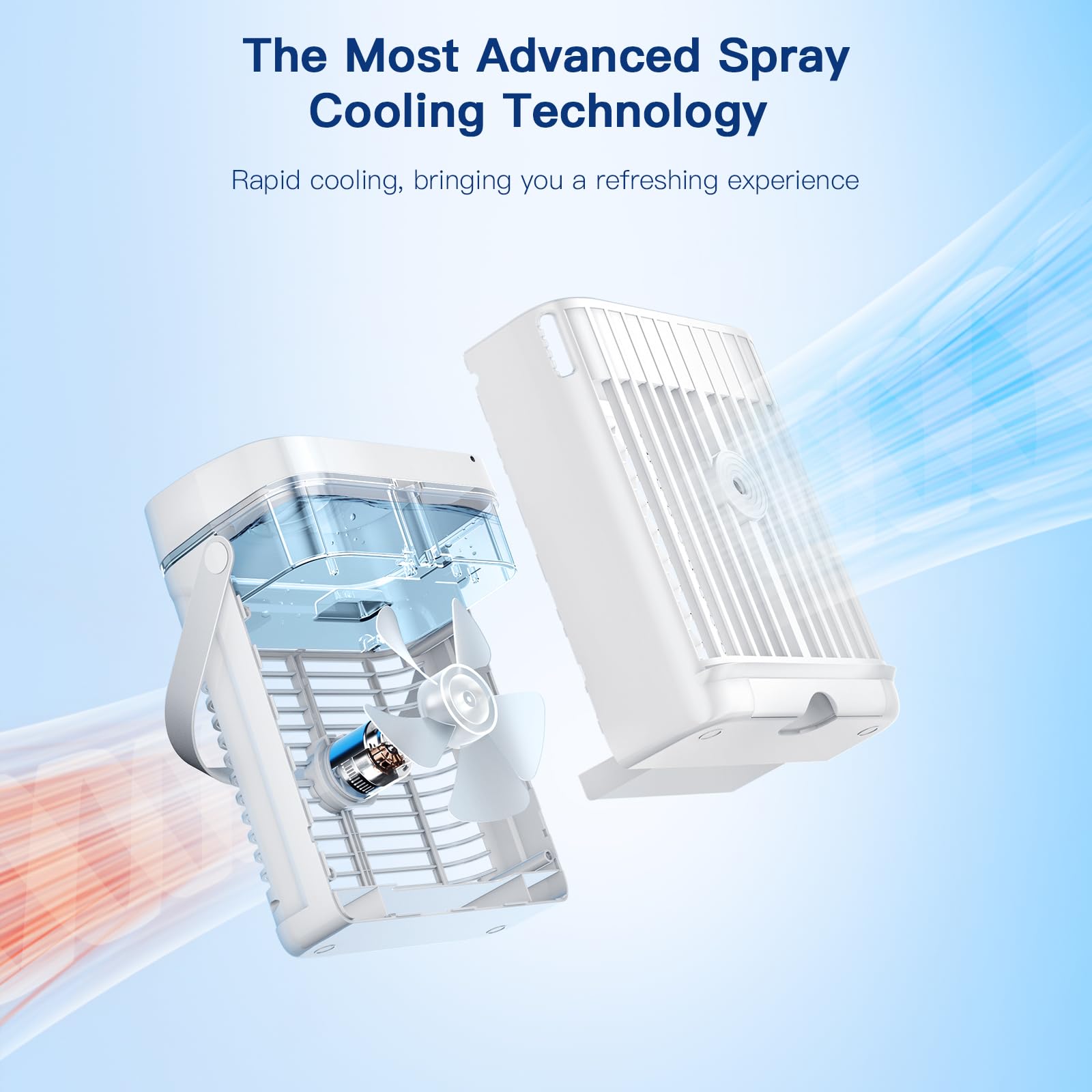 Mobile Klimaanlage, 4 in 1 Mobiles Klimagerät mit Kühlen Nebel, Klimaanlage Mobil ohne Abluftschlauch Luftkühler Mini mit 3 Stufen & 7 Farben Nachtlicht, Tragbarer Air Conditioner für Zuhause/Büro