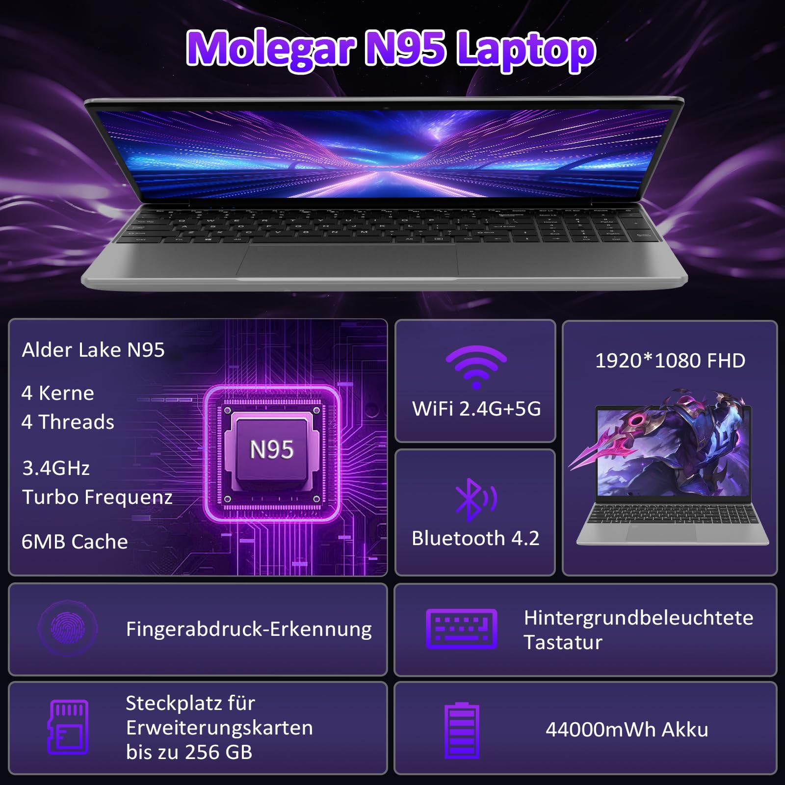 - 【2025 neuesten High-Performance-Prozessor】Molegar Laptop ist mit dem neuen Celeron N95 Quad-Core-Prozessor, 4 Threads, Hauptfrequenz 2.0GHz, bis zu 3.4GHz Beschleunigung, geringe Leistungsaufnahme von 15W. im Vergleich zu der Leistung eines Single-Core-Multi-Core-Leistung, die Gesamtleistung der 60% zu erhöhen, so dass die Reaktionsgeschwindigkeit ist schneller, reibungsloser zu bedienen!