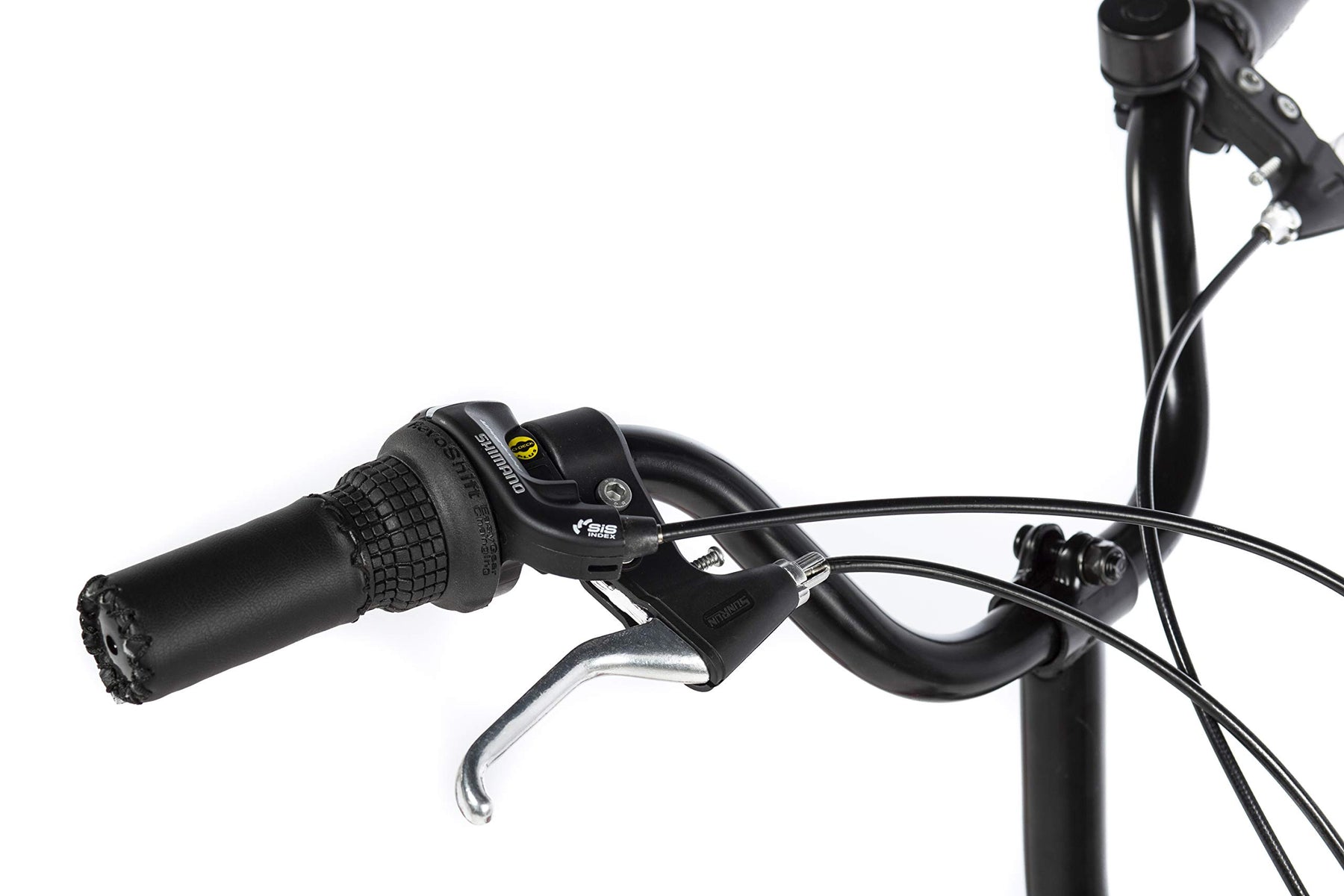 Einzelheiten: Gabelwechsel Shimano TZ-50 sechs vel. Gabelwechsel Befehle Shimano Revoshift RS-35 Originale Zahnrad Shimano Rahmen aus Aluminium 7005 20 Zoll Räder mit Felgen aus Aluminium Faltbare Lenker Faltbare Pedalen Schutzbleche Zahnstange Staffelei Lenkergriffe und Sattel aus schwarzem Kunstleder Städtisch Design 100 Prozent Ultraleicht Gröβe gefaltet 77 x 64 x 35 cm