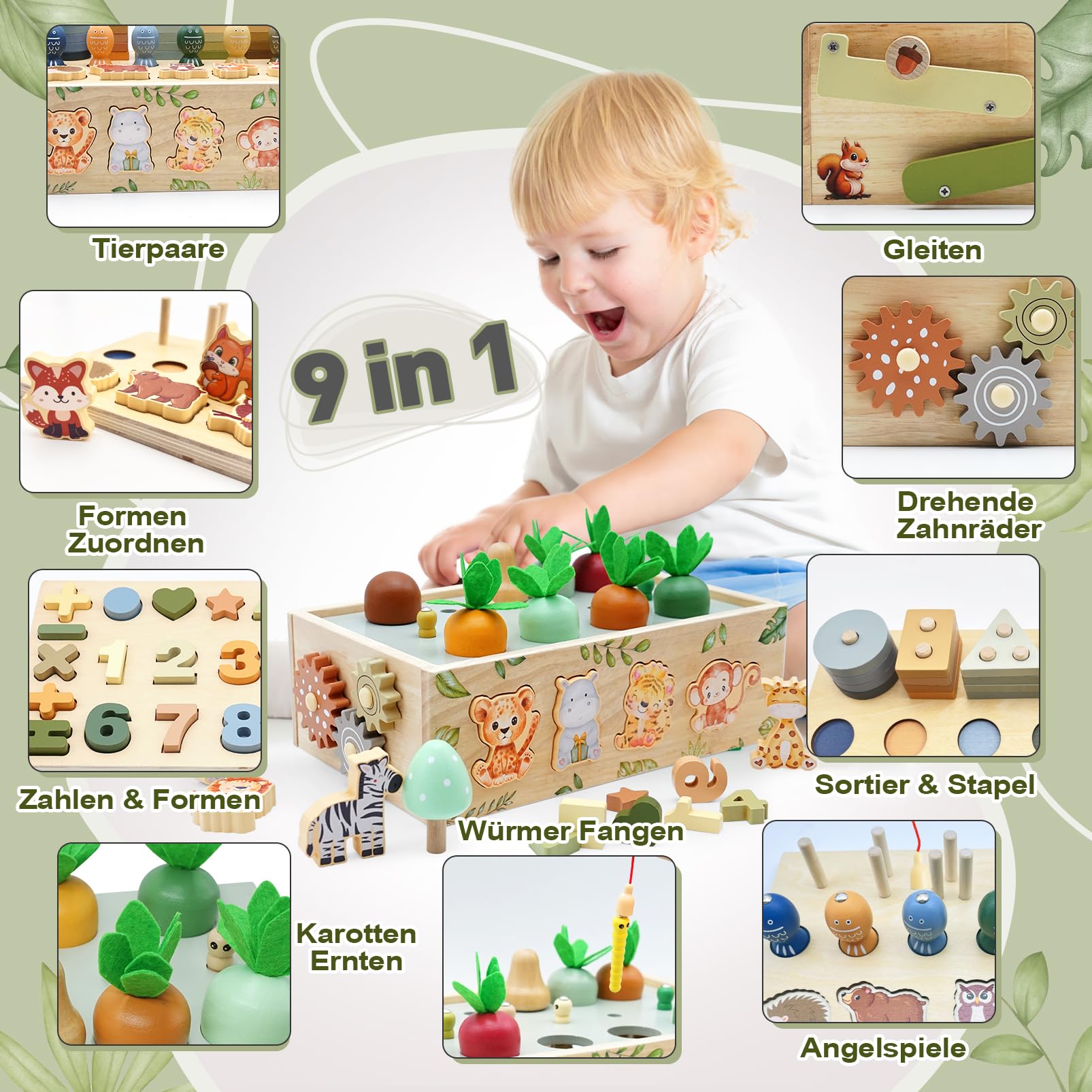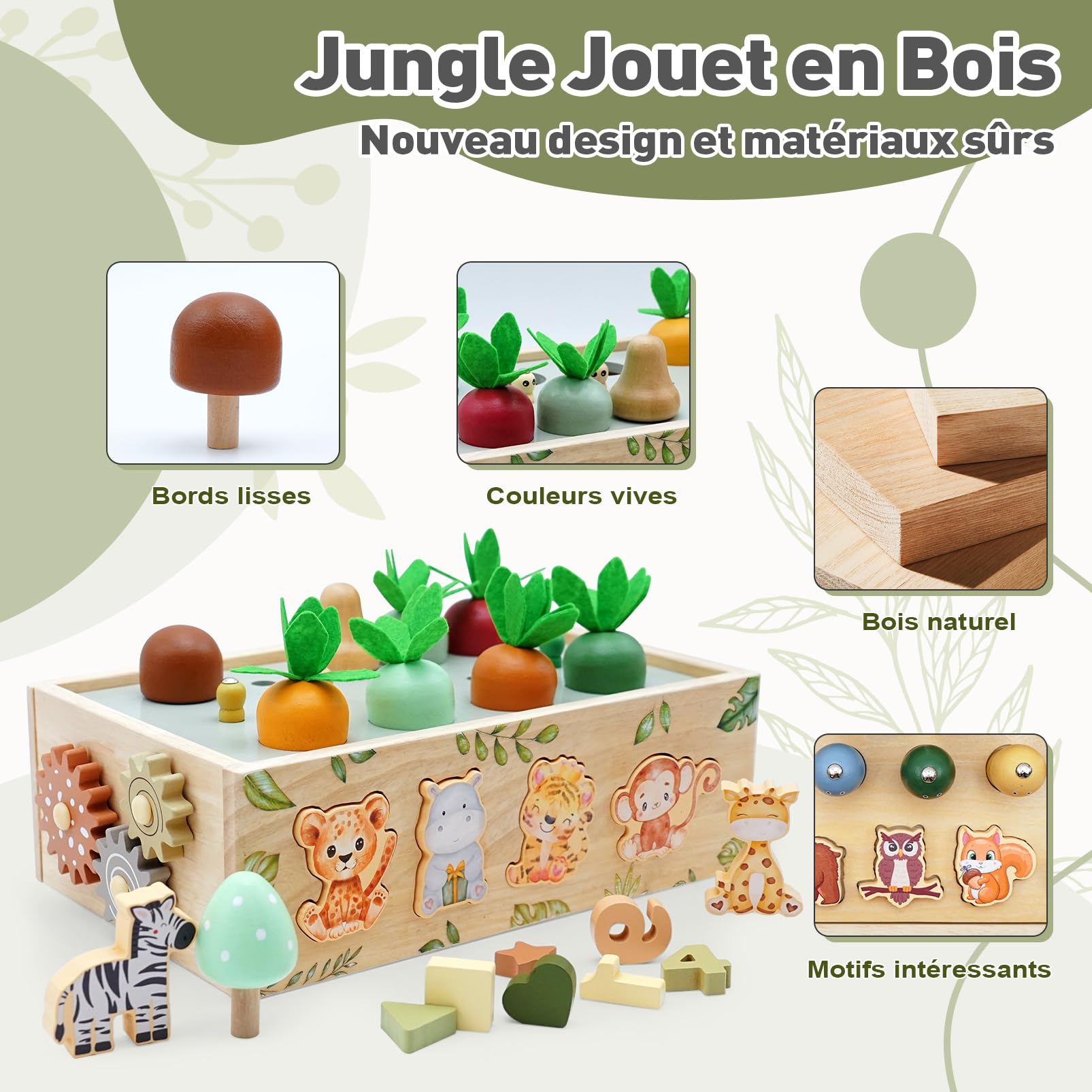 • [Förderung der Frühkindlichen Entwicklung]--Kinder ab einem Jahr interessieren sich zunehmend für das Zuordnen von Formen und Farben und beginnen, Konzepte wie Zahlen, Mengen und Größen zu erkunden. Unser speziell entworfener Dschungel Safari Montessori spielzeug ab 1 jahr enthält bunte Dschungel Safari, Karotten, Pilze, Insekten, Fische, verschiedene geometrische Formen und Zahlen, die die Aufmerksamkeit der Kleinen fesseln und ihre Feinmotorik sowie logisches Denken fördern.