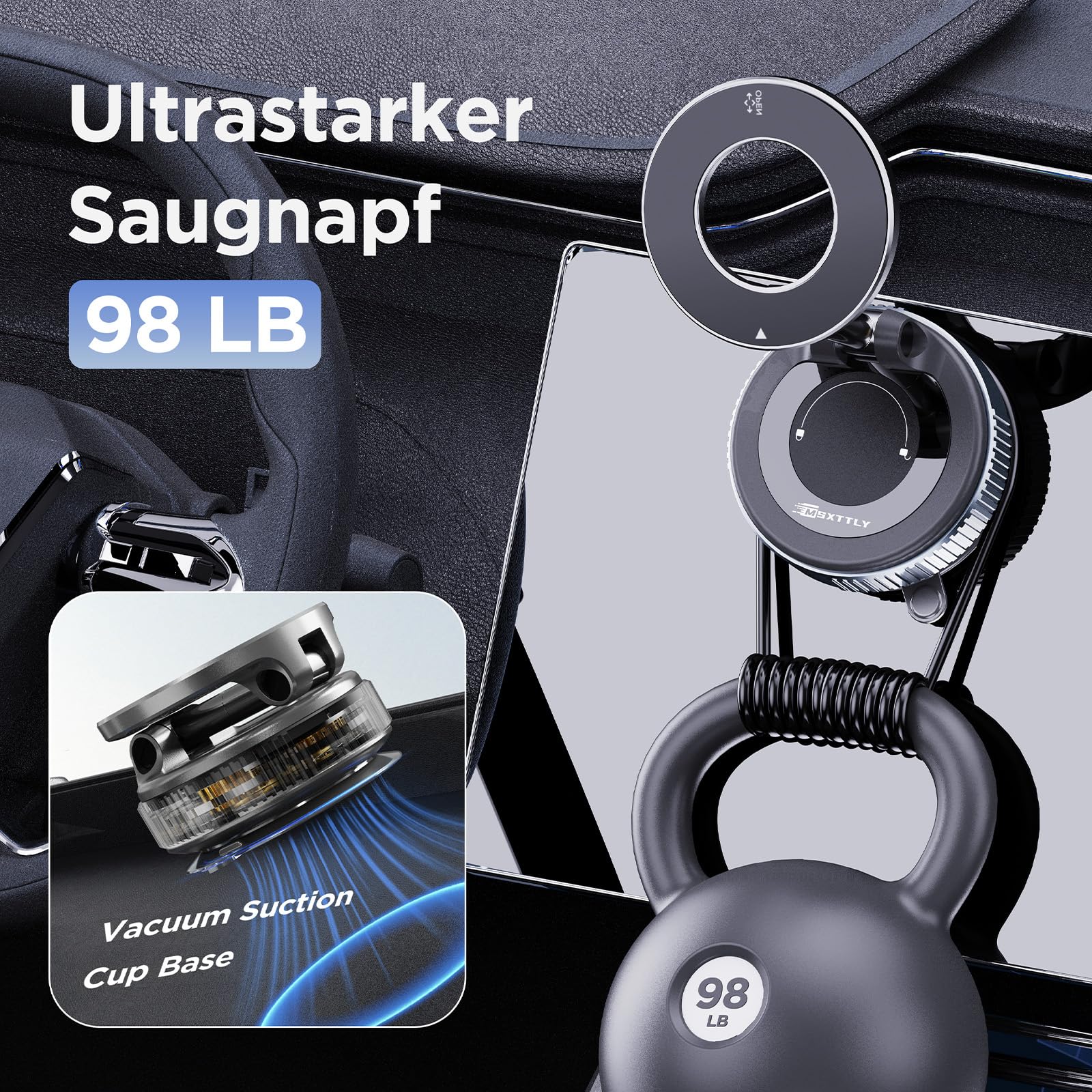 - 🚗 Starke Saugleistung, zuverlässige Stabilität - Durch die Verwendung fortschrittlicher Vakuumsaugnapf-Technologie mit Rotationssperre erhöht dieser Halter die Saugleistung um 50% und sorgt dafür, dass Ihr Gerät auch auf holprigen Straßen oder bei abrupten Stopps sicher an seinem Platz bleibt, mit einer Tragfähigkeit von bis zu 80 lbs. In extremen Temperaturen (-40°F bis 300°F) getestet, können Sie sich auf ihn verlassen, egal ob für städtische Fahrten oder lange Reisen.