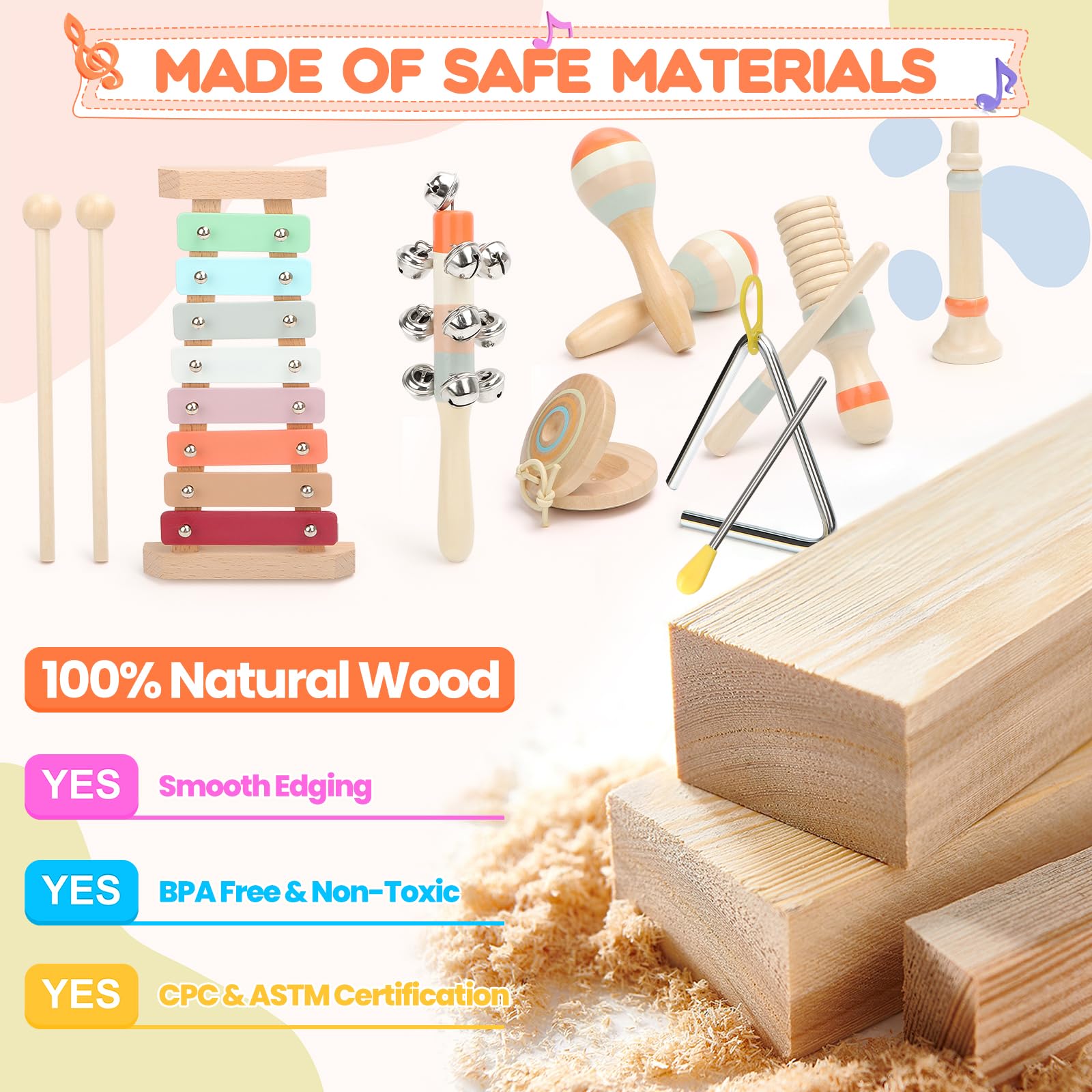 - ✅️【Hochwertige Materialien】Musikinstrumente für Kinder besteht aus Naturholz, sind BPA-frei, mit organischen Pigmenten und ungiftiger Farbe auf Wasserbasis. Sie haben eine glatte Oberfläche, abgerundete Kanten, eine schöne Politur und die richtige Größe, keine Grate, sicher und langlebig, Sie müssen sich keine Sorgen machen, dass Ihr Baby beim Spielen mit Spielzeug verletzt wird. Es ist die perfekte Ergänzung zu Ihren entzückenden Kleinkindspielzeugen!
