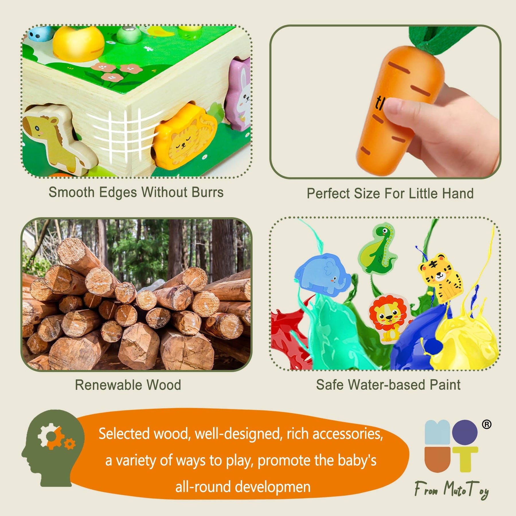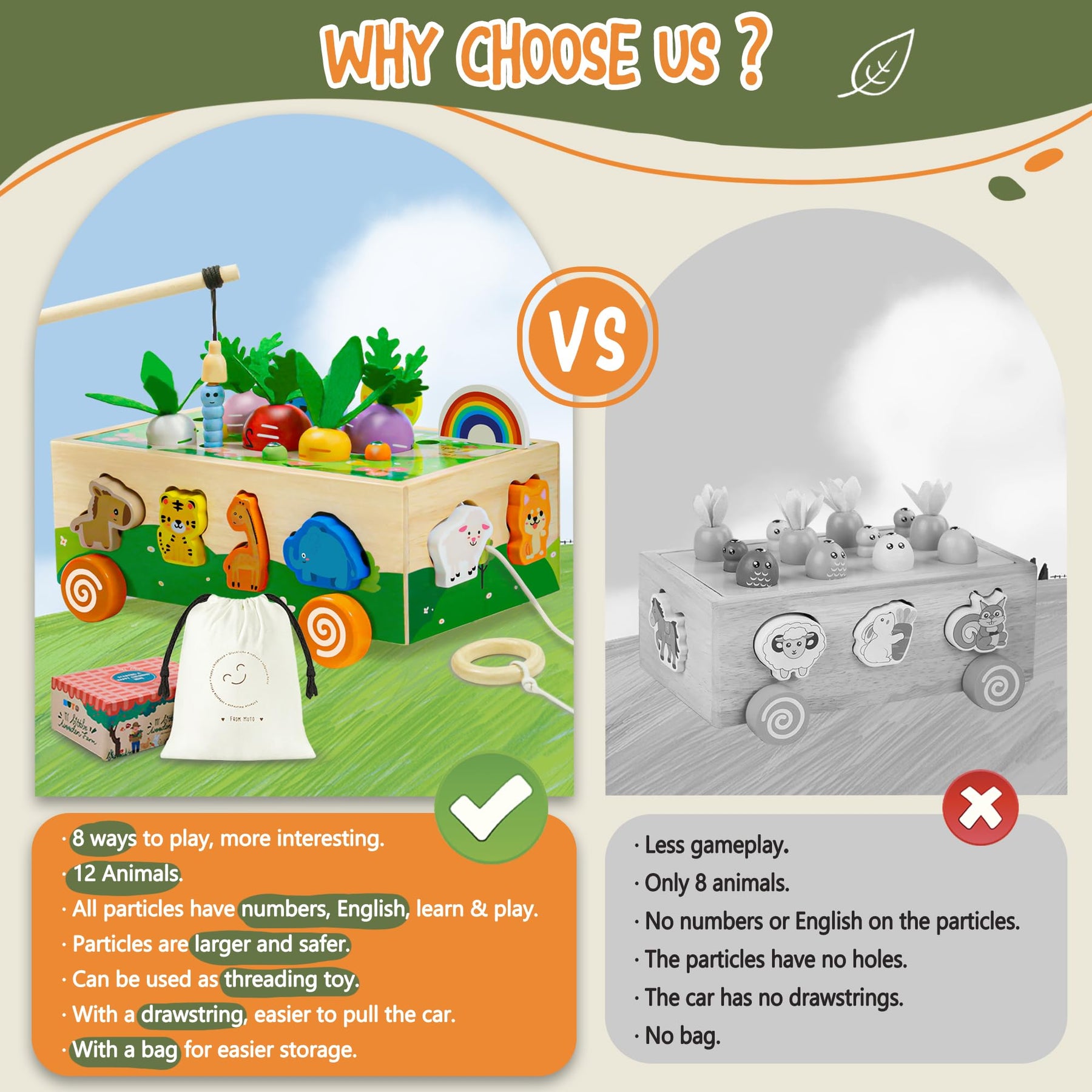 • 【Montessori Spielzeug ab 1 jahr】Unsere 6 in 1 Montessori Holzspielzeug bietet deinem kleinen Schatz mit Radieschen ziehen,Tieren Anerkennung,Form Matching, Farberkennung, Stapelspiel, Magnetisches Angelspiel, Fädelspiel, Nachziehspiel und Lagerung und Sortierung spielen vielfältige Möglichkeiten sich zu beschäftigen, was ein perfektes frühes Lernspielzeug für 1-3-jährige Mädchen und Jungen ist.