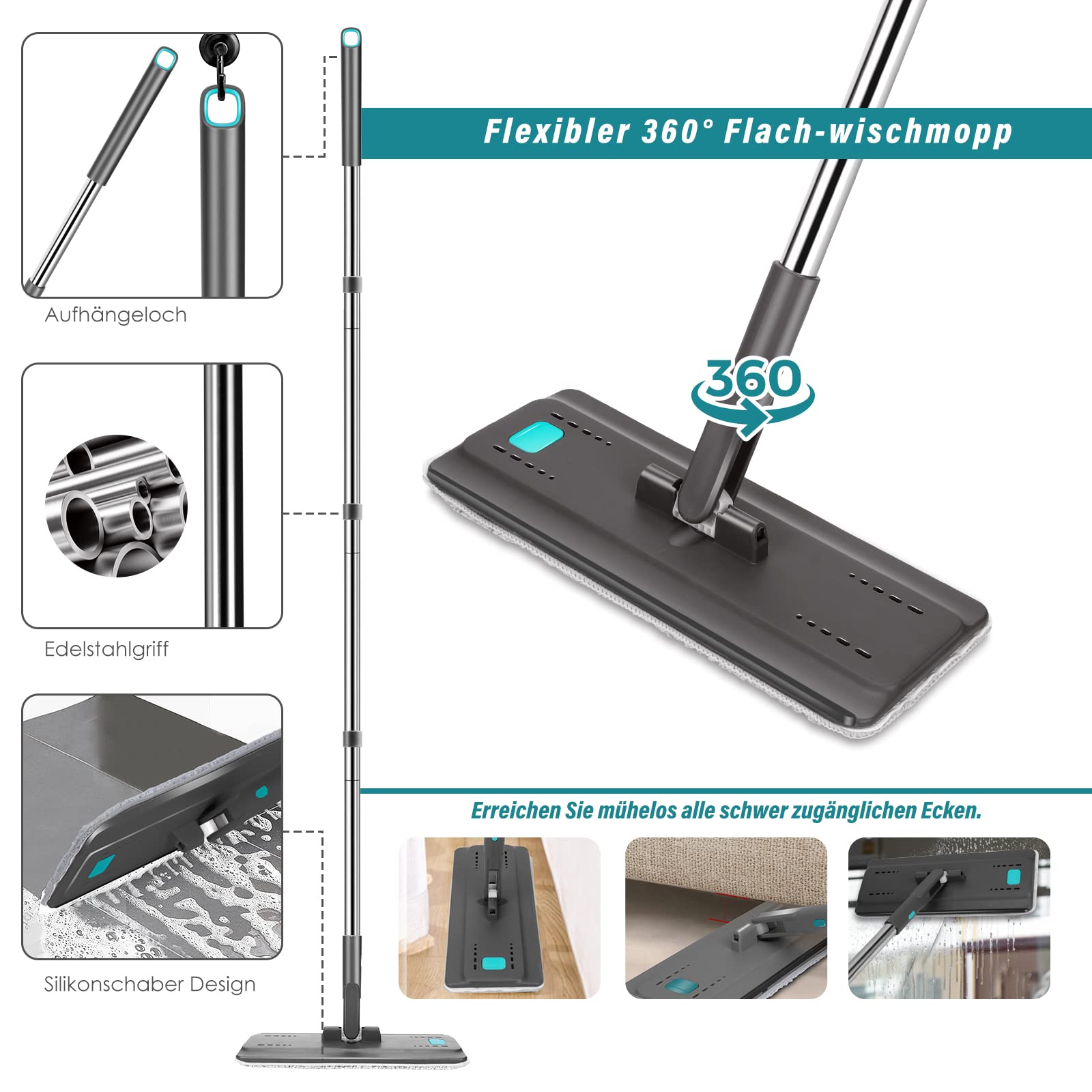 - 140cm Verlängern Edelstahlgriff: Der Bodenwischer Set verfügt über 4 abnehmbare Moppstangen, die je nach Körpergröße zusammengesetzt und auf 140 cm verlängert werden können. So können Sie ohne Bücken wischen und vermeiden Rückenschmerzen.