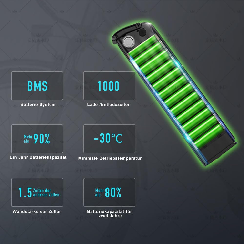 • Leistungsstarkes Energiesystem: Unser Elektrofahrrad verwendet ein bürstenloses Antriebssystem, um die Stromnutzung des Motors zu verbessern,Mit der eingebauten Herausnehmbaren 13Ah-Batterie beträgt die Reichweite ca. 100 Meilen nach einer vollen Ladung für 4-5 Stunden. Minimale Betriebstemperatur -30 °C, unterstützt das Aufladen und Entladen für 3000 Mal, kann die Batteriekapazität innerhalb von zwei Jahren auf >80 % halten.