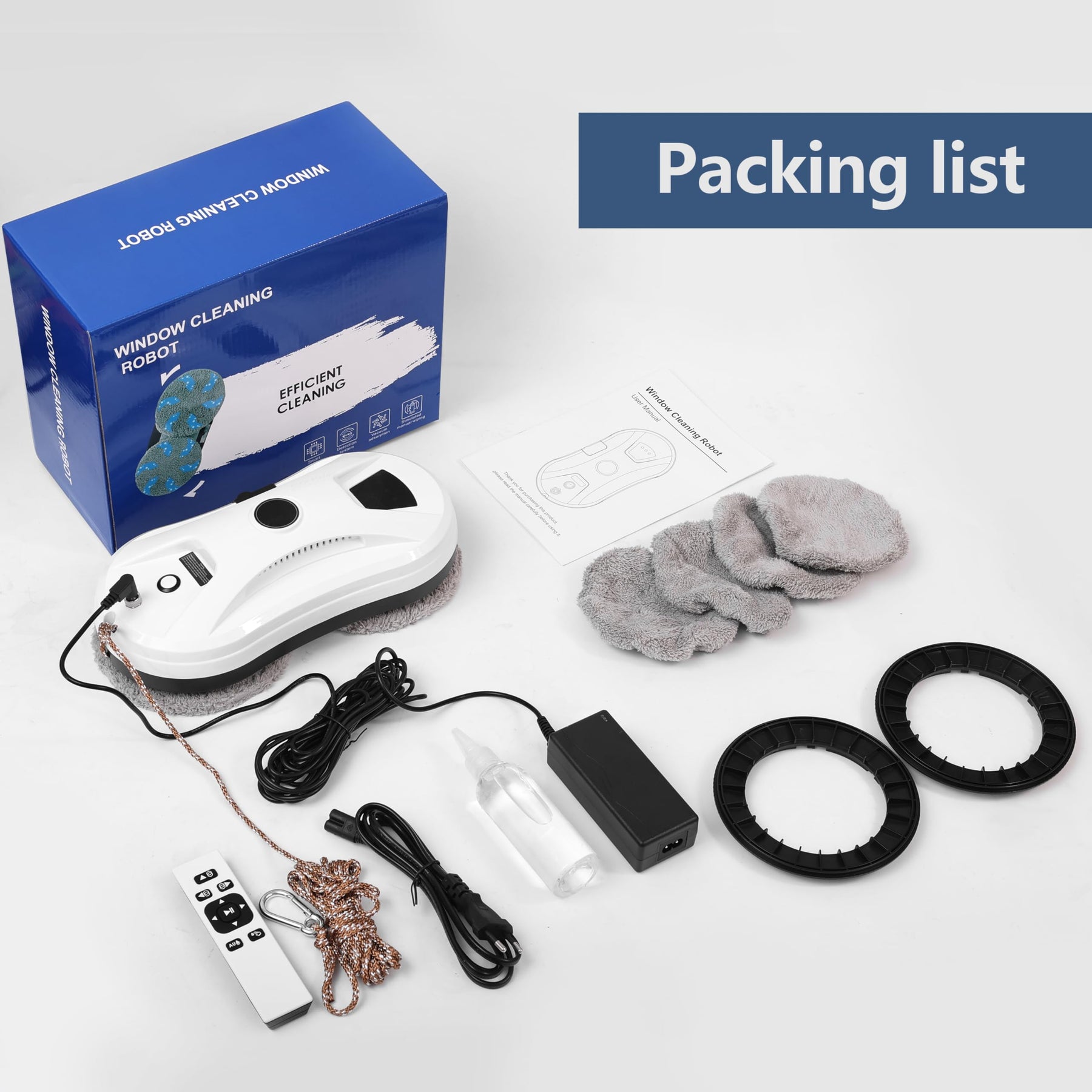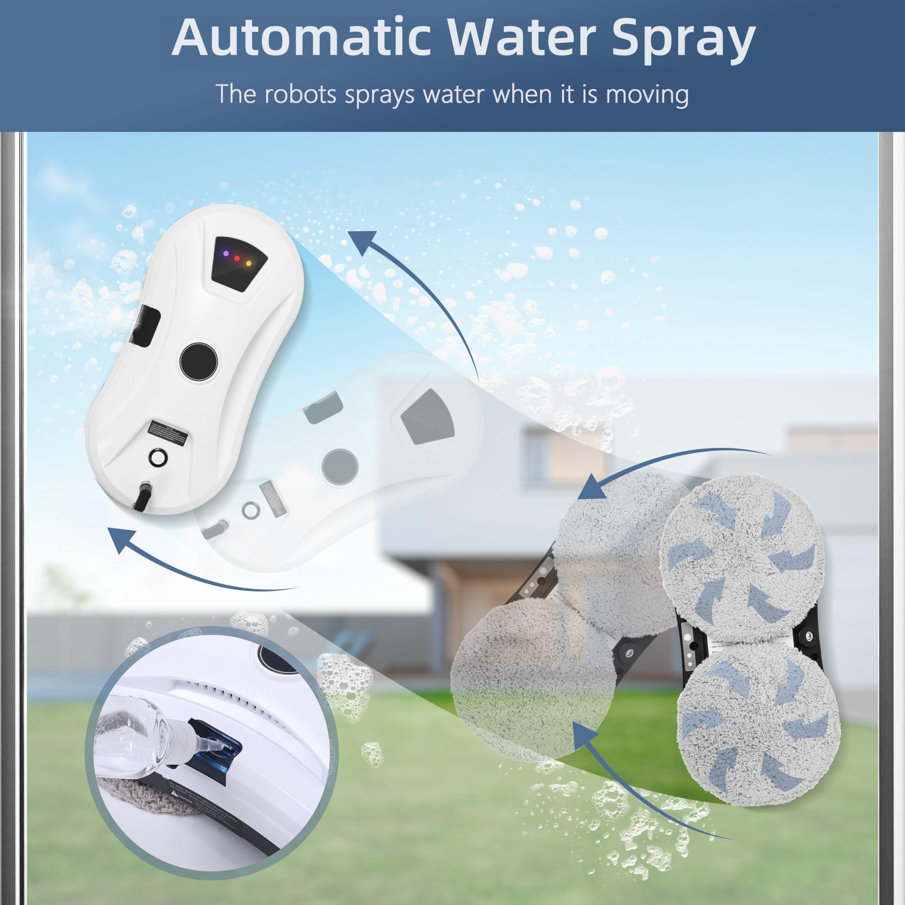 - 【Intelligentes Wassersprühsystem】Unser Fensterputzroboter verfügt über einen 30ml Wassertank für eine effiziente Reinigung, die per Fernbedienung gesteuert wird. Mit einer Geschwindigkeit von 4 Minuten pro Quadratmeter, kann dieser Fensterroboter bis zu 20 Quadratmeter pro Sitzung bewältigen.