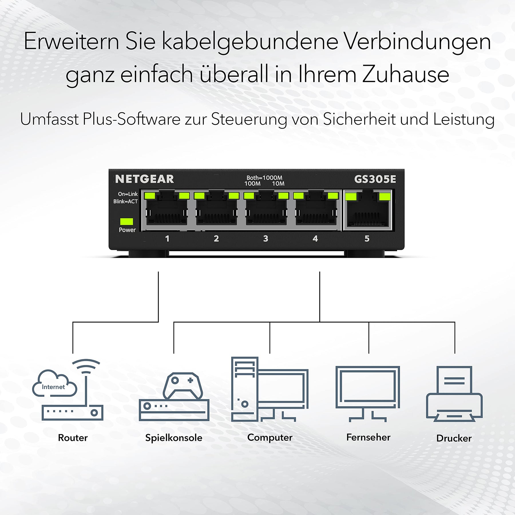 • Geräuschloser Betrieb: Lüfterloses Design des Smart Switch 5 Port sorgt überall für einen leisen Betrieb