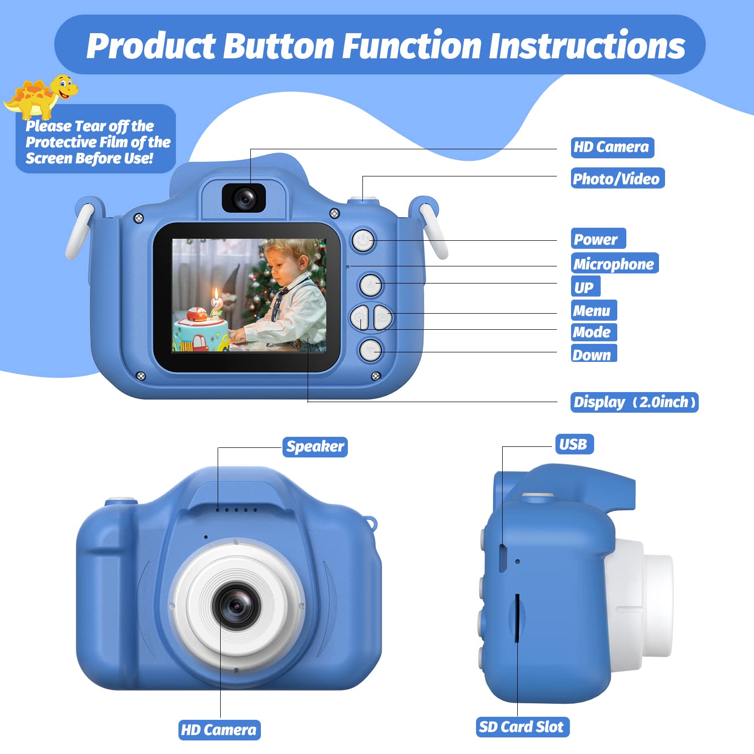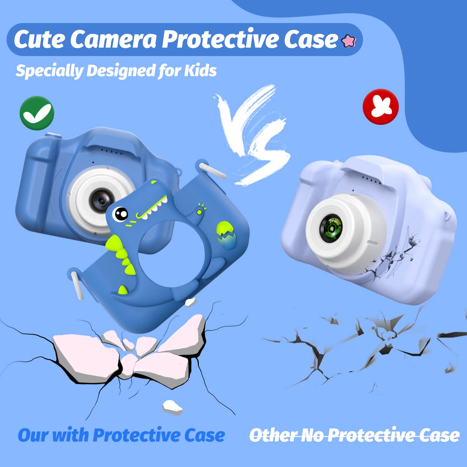 • 【Warum Sie unser Produkt wählen】Es kommt mit: 1x Kinderkamera mit Dinosaurier-Cartoon-Schutz, 1x USB-Ladekabel, ,1x 32GB Speicherkarte(Die SD-Karte wurde in die Kamera eingelegt. Sie können es an der Seite sehen), 1x Hängeband, 1x Benutzerhandbuch. Wenn Sie irgendwelche Fragen mit unseren Produkten oder Service haben, kontaktieren Sie uns bitte jederzeit, und wir werden Sie mit perfekten Lösungen so schnell wie möglich zur Verfügung stellen, Wir sind sicher, das Kind wird eine Explosion haben.