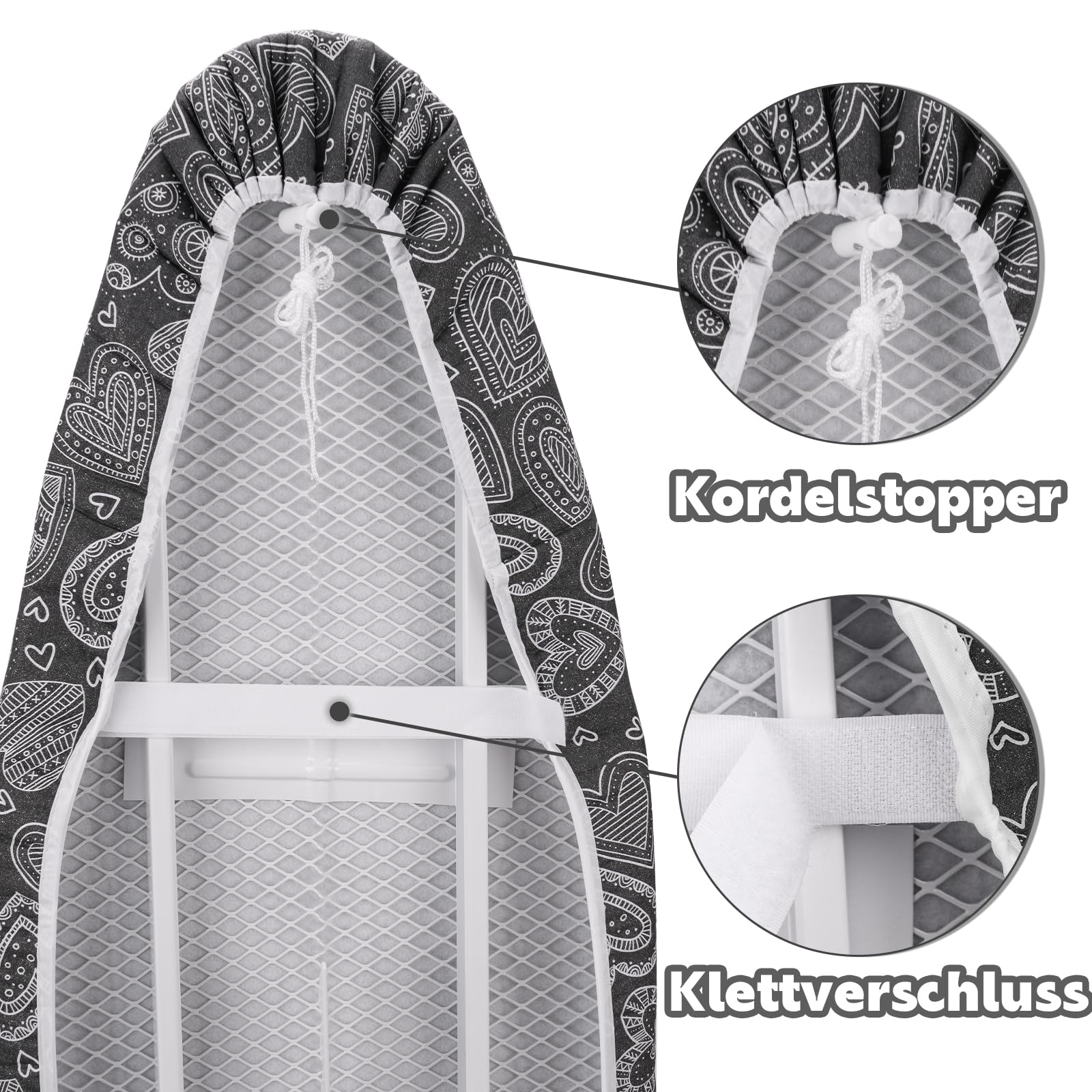 Neu Premium-Bügeltischbezug für Schnelles und Einfaches Bügeln, für Dampfbügeleisen, Schwarzes Herz, 30-35cm x 108-115cm (Größe M)