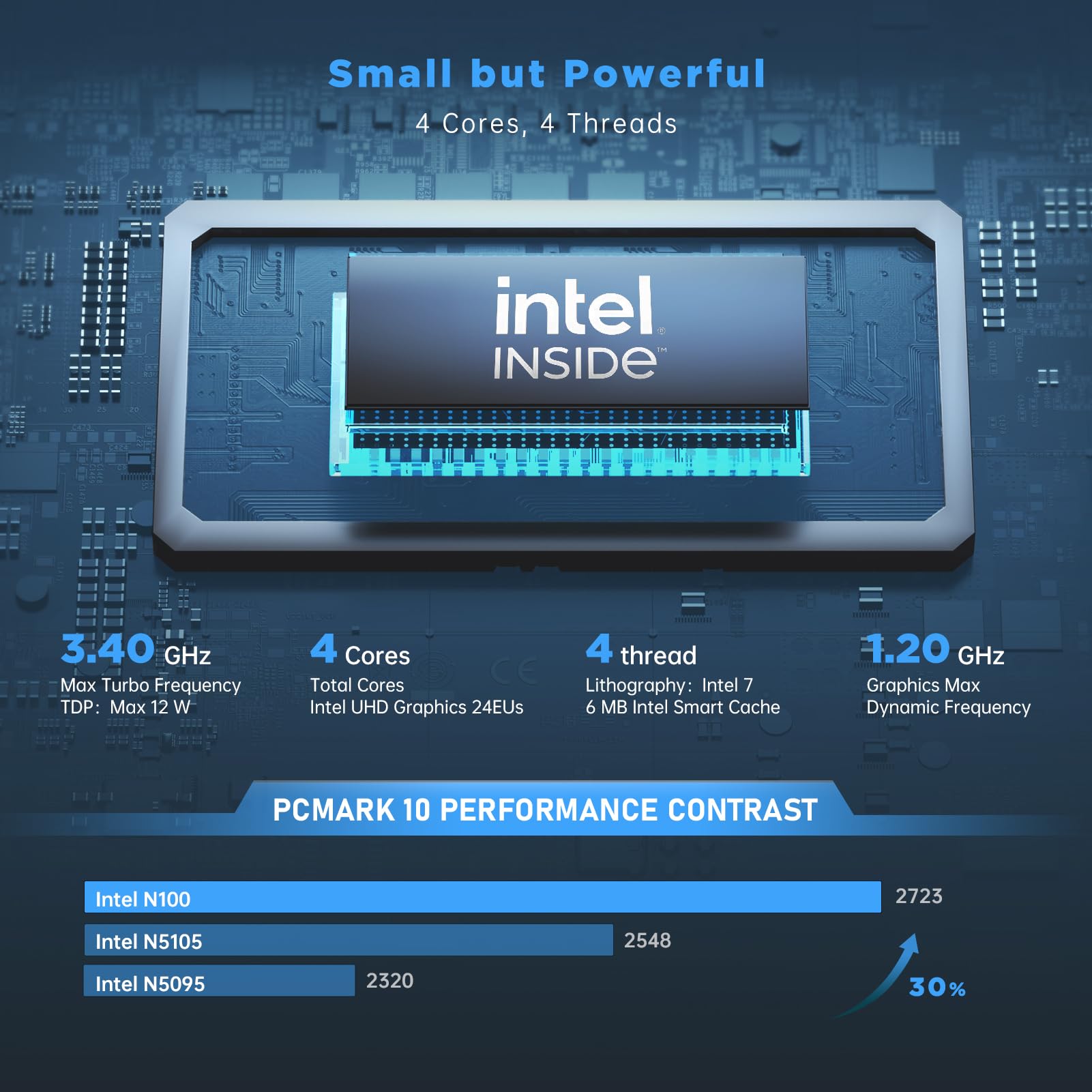 - 【Intel Alder Lake-N N100 der 12. Generation】Der AK1 PLUS Mini PC ist mit einem Intel Alder Lake N100-Prozessor der 12. Generation, 4 Kernen und 4 Threads, Turbofrequenz bis zu 3,4 GHz (TDP bis zu 15 W) ausgestattet. Bei der Verarbeitung einfacher Aufgaben kann der Stromverbrauch bis auf 6 W sinken. Hochleistungsprozessor, der 30 % besser ist als der Intel Celeron N5095/N5105, effizient und reibungslos für den Einsatz im Büro und zu Hause. Wie Home-Entertainment, Online-Bildung, Unterhaltungs.
