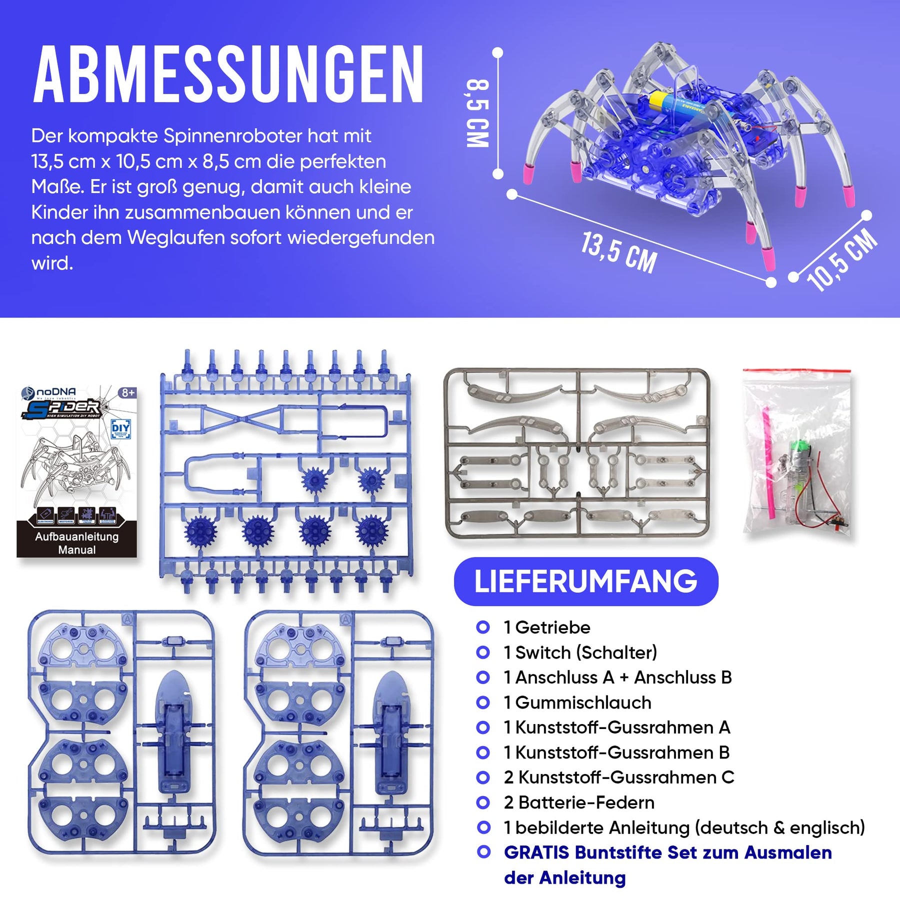 - SPINNE FREUND: Keine Spinne vor der man Angst haben muss. Unser Spinnenroboter bringt Freude und Spaß zu Ihnen nach Hause. Genießen Sie die gemeinsame Zeit mit Ihrem Kind mit dem Do it Yourself Kinder Roboter Bausatz zum selbst zusammenbauen. Die besten Geschenkideen Weihnachten für Technikfans!