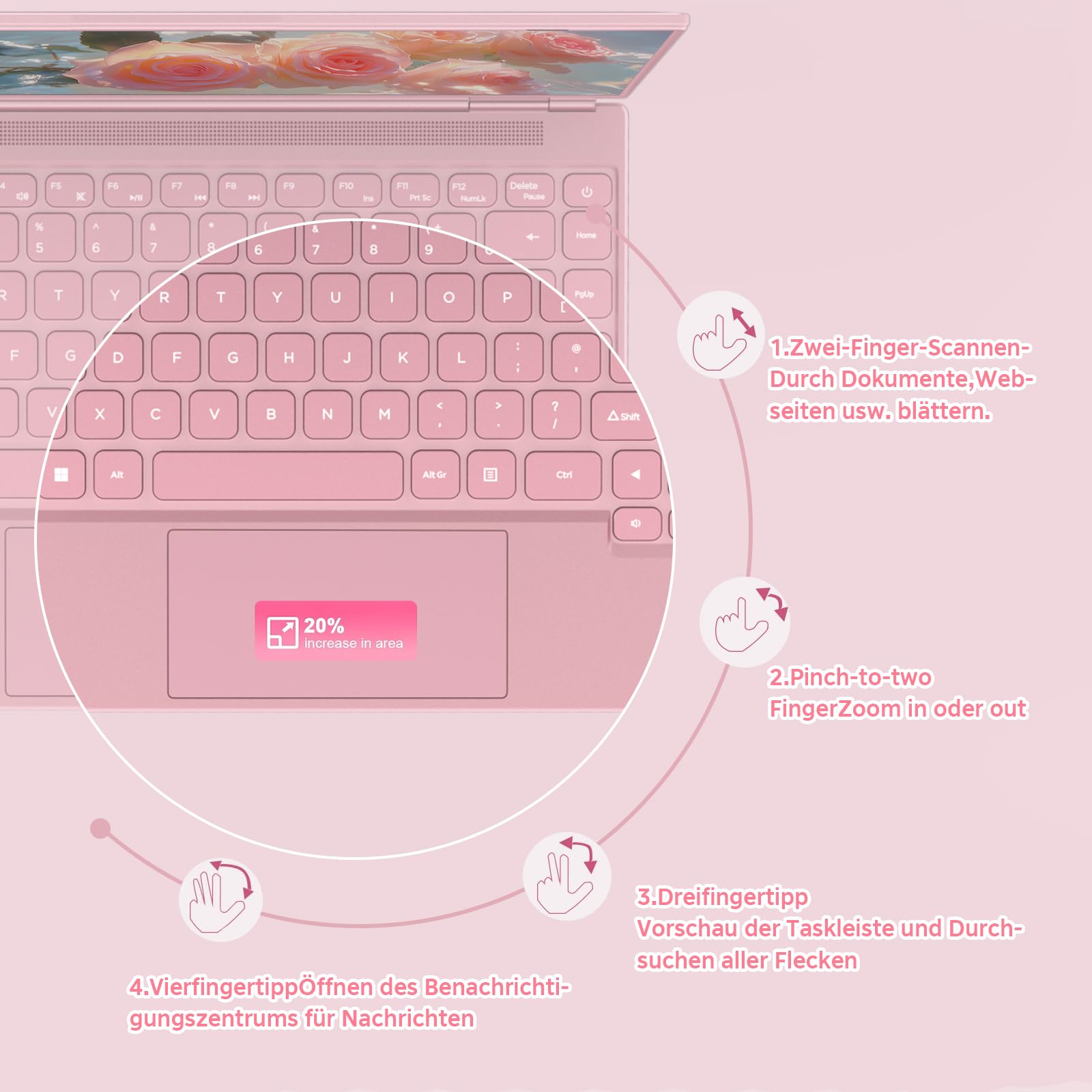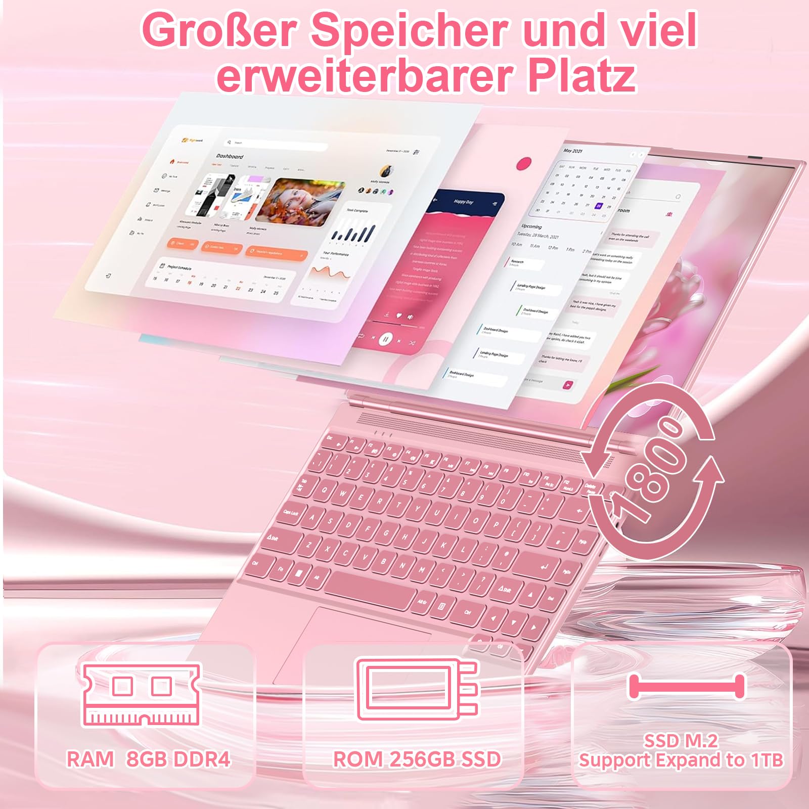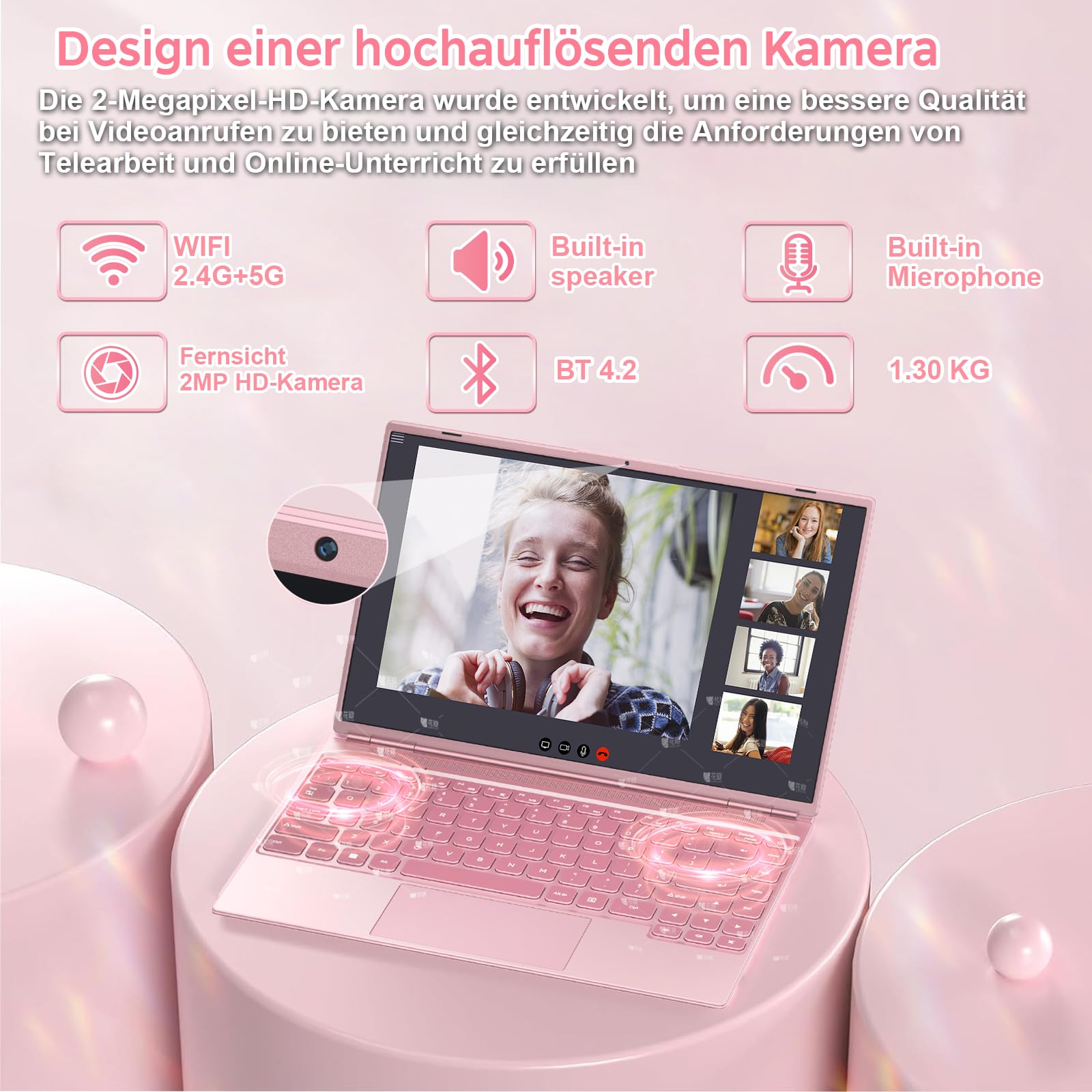 - Lange Akkulaufzeit und Kundenservice: Dieser Laptop rosa verfügt über einen leistungsstarken 4500mAh, der 4-5 Stunden Videowiedergabe und 8 Tage Standby-Zeit ermöglicht – keine Sorgen mehr um den Akku. Wir bieten außerdem 1+1 Jahr Garantie auf jeden Laptop, damit Sie ein komplettes, hochwertiges Produkt erhalten. (Hinweis: Unsere Tastatur verwendet das internationale QWERTZ-Layout. Für eine deutsche Tastatur benötigen Sie die mitgelieferte deutsche Tastaturabdeckung)