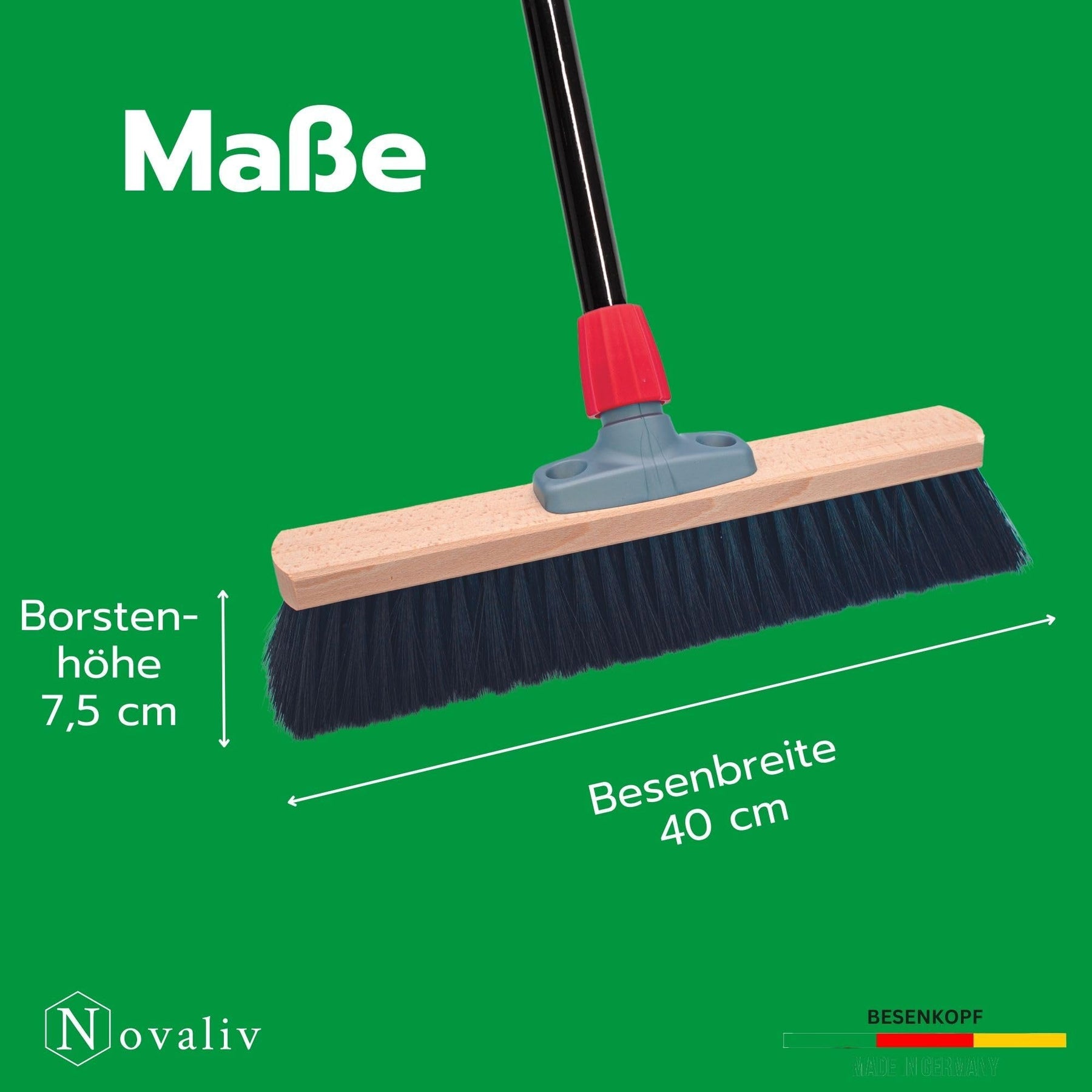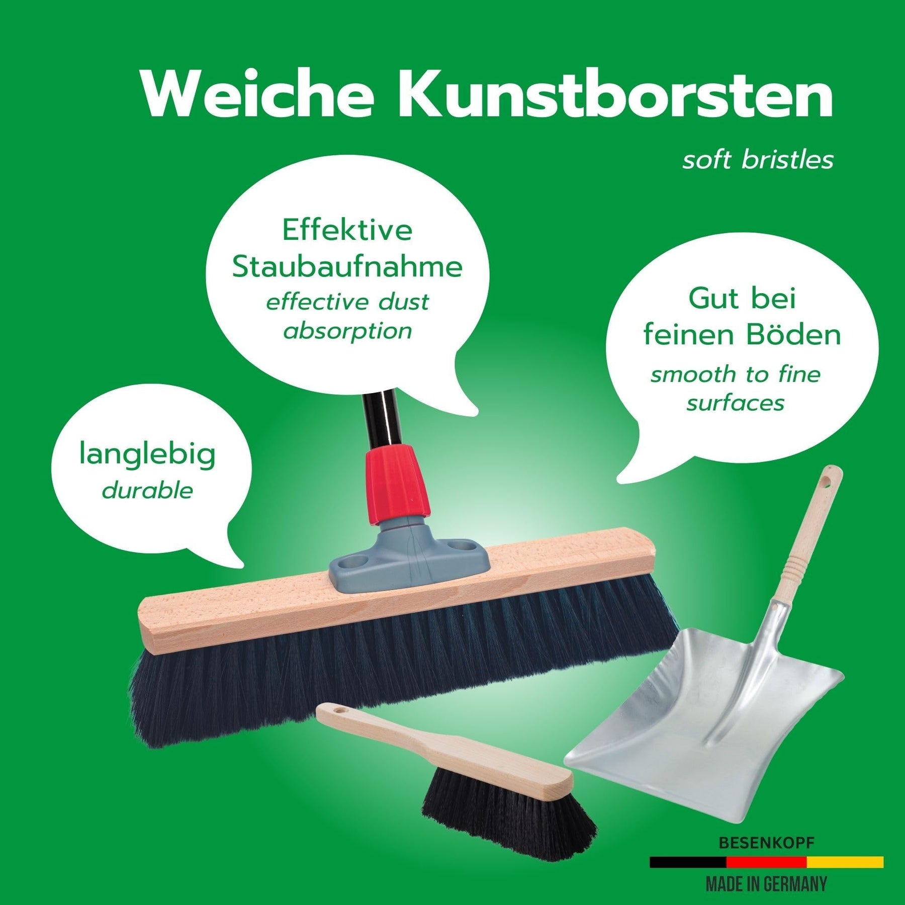 Einzelheiten: Universelle Reinigung: Der Industriebesen mit Stiel ist der ideal für die Beseitigung von Schmutz ohen Kratzer. Perfekt als Werkstattbesen, Hallenbesen, Zimmerbesen, Stubenbesen oder als Hausbesen Qualität & Leistung: Profitieren Sie von der Strapazierfähigkeit der Kunststoffborsten unseres Besen mit Stiel, der den Schmutz mühelos entfernt, ohne dabei an Form und Funktion einzubüßen. Maximale Kompatibilität & Stabilität: Robuster fest verschraubter Stielhalter passt zu allen Standardstielen 22-28mm verstärkt durch ein Innengewinde und eine Überwurfmutter für extra festen Halt Innovatives Steck- & Schraubsystem: Der Stiel bietet Stabilität durch überlappende Steckverbindungen mit dem Komfort eines einfach zerlegbaren Schraubsystems für platzsparende Aufbewahrung. LIEFERUMFANG: Sie erhalten einen Saalbesen mit Stiel 40 cm breit. Der Besenkopf ist aus Holz, hergestellt in Deutschland. Inkl. Kehrgarnitur verzinkt bestehend aus einen Kehrblech und Handfeger. Saalbesen groß großer grosser 40 50 60 80 100 cm Besen mit stiel teleskopstiel teleskop werkstatt-besen terassen-besen balkon-besen hofbesen kehrbesen Industriebesen Hallenbesen Haar-besen Rosshaarbesen weich garten-besen Zimmerbesen Stubenbesen