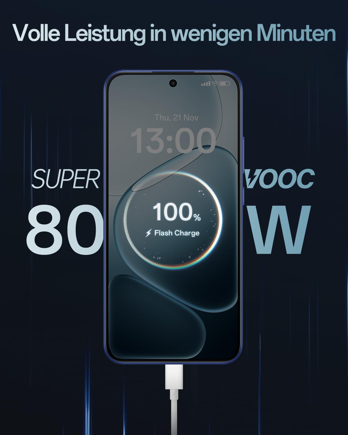 - 【6500mAh Großer Akku + 80W Schnellladung + Rückwärtsladefunktion】Mit einem 6500mAh-Akku hält er lange und bleibt über 5 Jahre „wie neu“. Die 80W SUPERVOOC-Schnellladung ermöglicht eine schnelle Aufladung in Minuten. Die Rückwärtsladefunktion verwandelt Ihr Telefon in eine externe Batterie, um Kopfhörer und andere Geräte unterwegs aufzuladen.