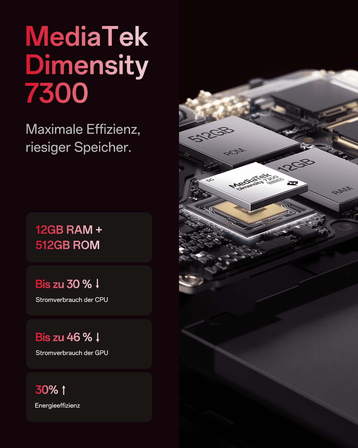 • 【MediaTek Dimensity 7300&512GB ROM Mega Speicher】Smartphone android 14 ohne vertrag mit der weltpremiere der von MediaTek und OPPO gemeinsam entwickelten plattform mit 4nm prozess können sie mit jeder ladung mehr stunden verbringen. Der chip des Dimensity 7300 macht das telefon benutzerfreundlicher. Und mit bis zu 12GB RAM und 512GB ROM müssen sie sich keine sorgen um leistung oder speicherplatz machen.