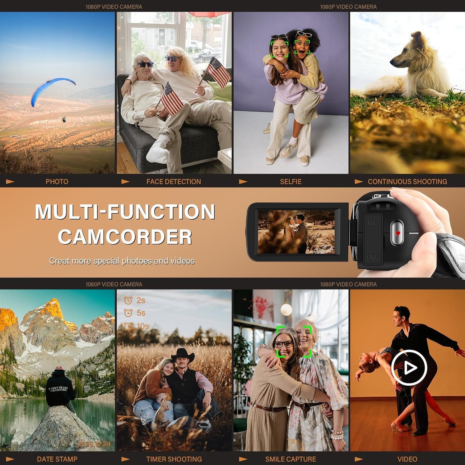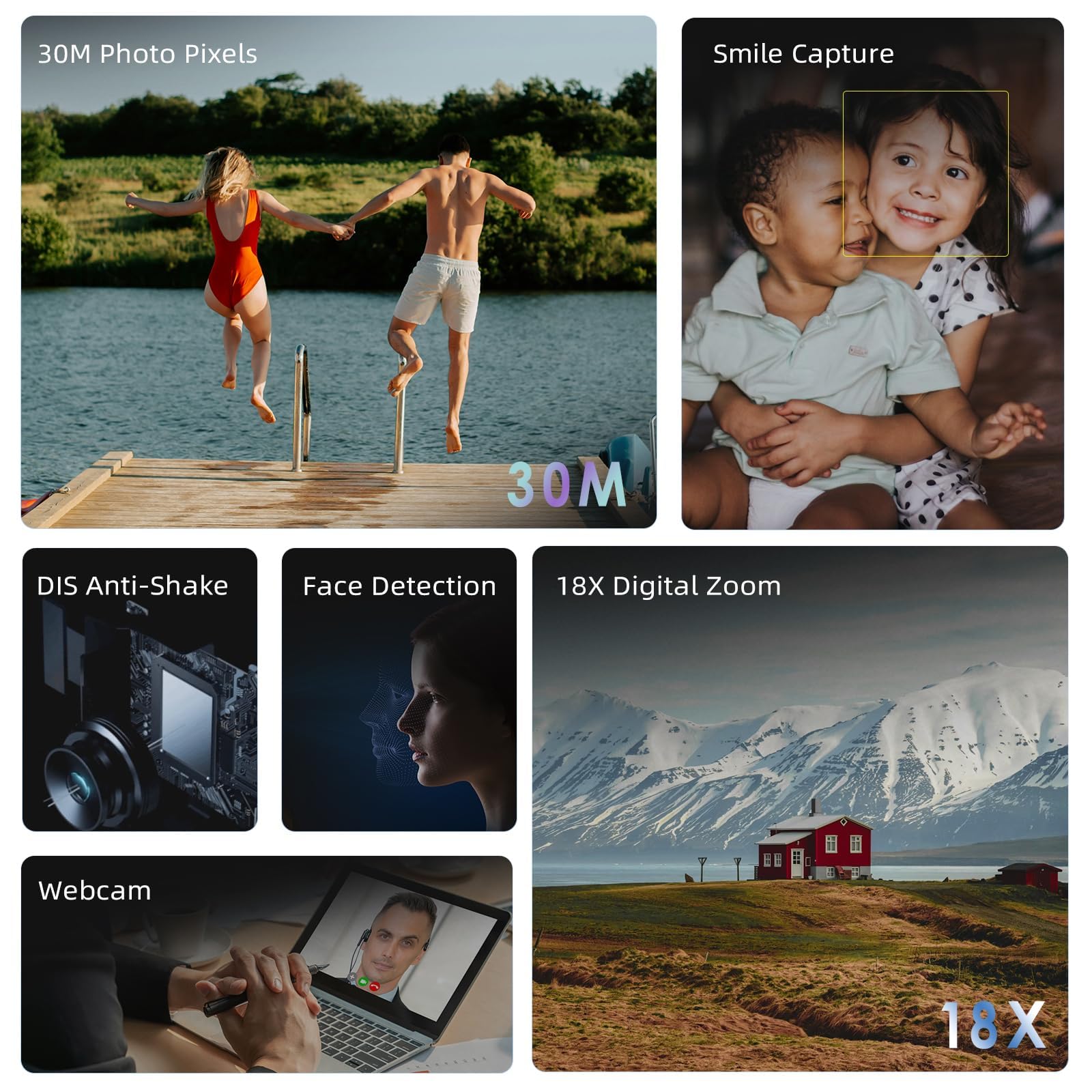 - 【PROFESSIONELLE BILDQUALITÄT】Diese kompakte Videokamera liefert klare 1080P HD-Videos und 30MP Fotos durch einen leistungsstabilen Sensor. Mit digitalem Zoom und handlichem Design ist sie ideal für Aufnahmen unterwegs.