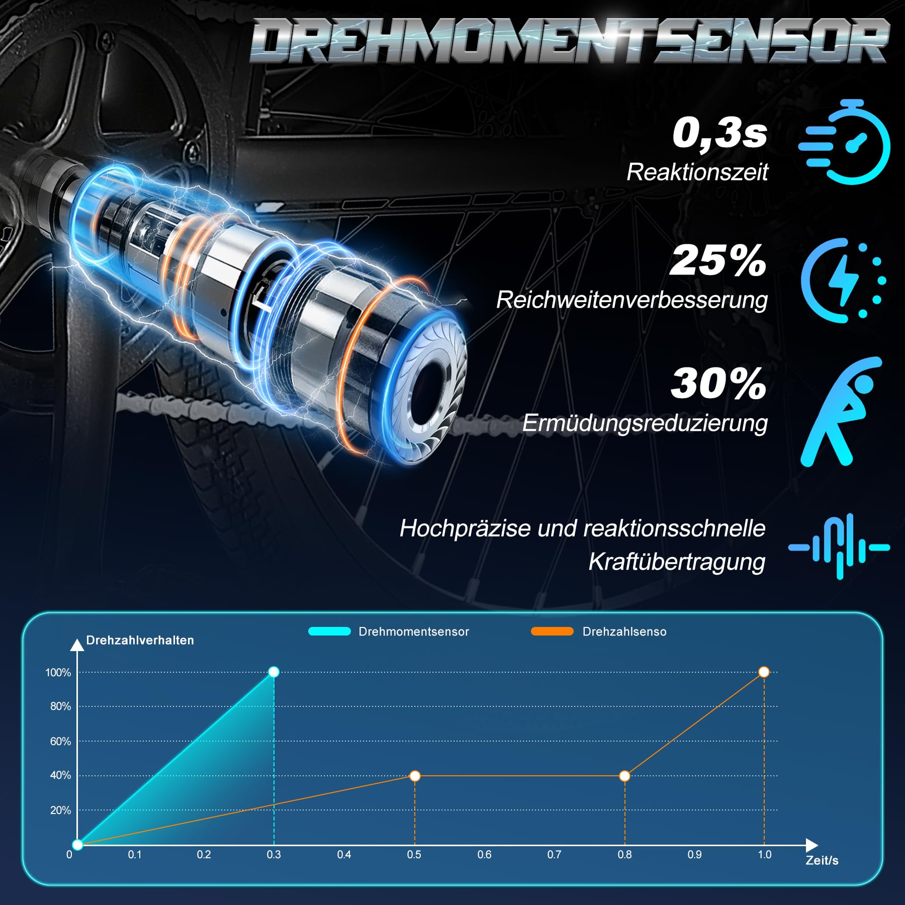 - 【Drehmoment-Sensorik】Die präzise Drehmomentsensor-Technologie von erkennt selbst feinste Pedalkraftänderungen und ermöglicht eine nahtlose, natürliche Motorunterstützung. Die innovative Algorithmik verbindet menschliche Kraft mit elektrischer Unterstützung in perfekter Harmonie. Durch die millisekundenschnelle Reaktion wird das Fahrgefühl zum puren Vergnügen – ganz ohne spürbare Verzögerung oder ruckartige Beschleunigung.
